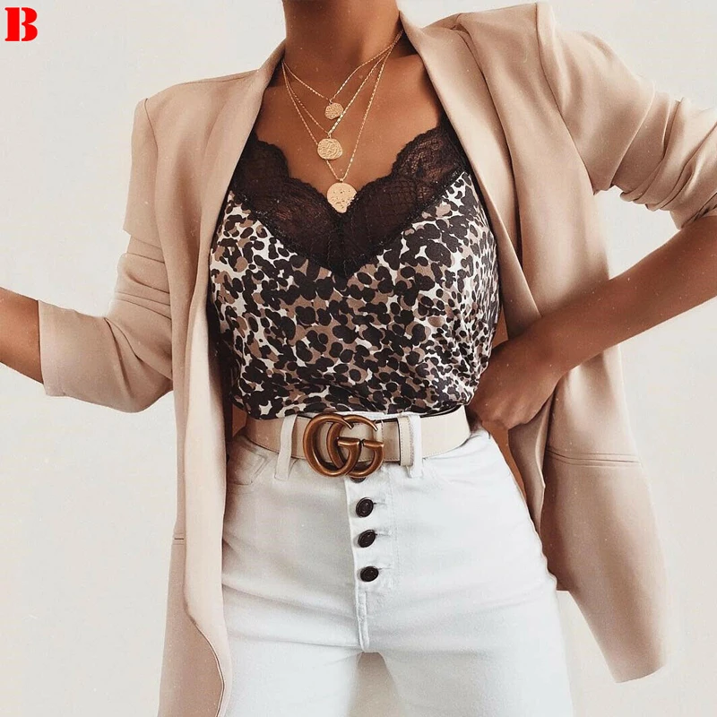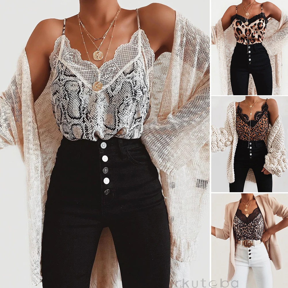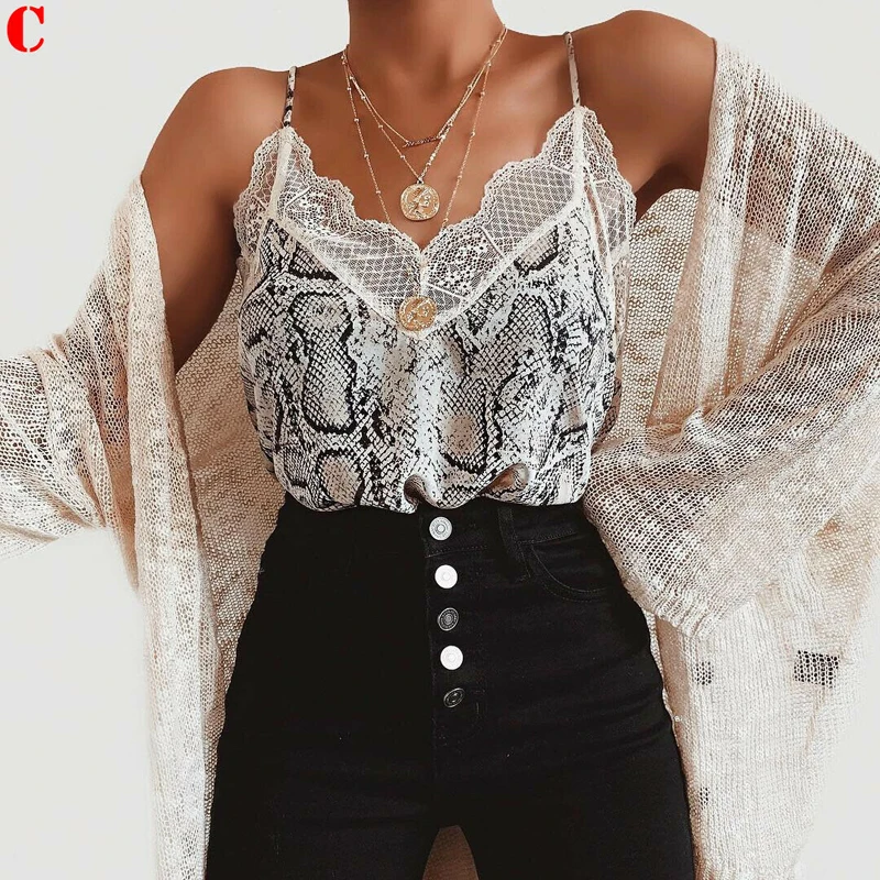 Женский кружевной топ с леопардовым принтом, элегантная Свободная майка со змеиным принтом, с V-образным вырезом, на бретелях