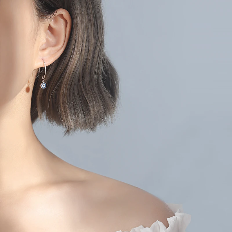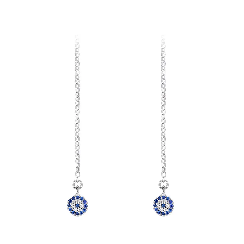 Женские серьги с круглыми голубыми глазами VOQ, серебро 925 пробы