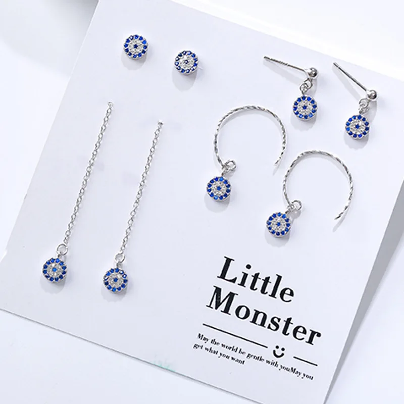 Серьги-гвоздики LISM серебряного цвета с индейкой и синим кристаллом сглаза для женщин 2020 винтажные модные ювелирные изделия