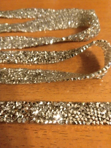 доставка почти мгновенная.пришло чуть ли не за неделю.думала украсить платье, однако, в качестве фарнитуры на одежду не подойдёт. кристаллики из пластика приклеины на толстую силиконовую ленту-скотч, легко отклеить пальцем. стирку не выдержат однозначно. годится только на украшение поделок и т.п.