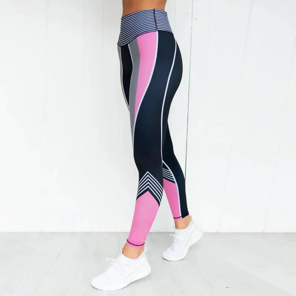 Женские леггинсы для фитнеса, облегающие спортивные Леггинсы в полоску, повседневные леггинсы с принтом, модные женские Леггинсы пуш-ап