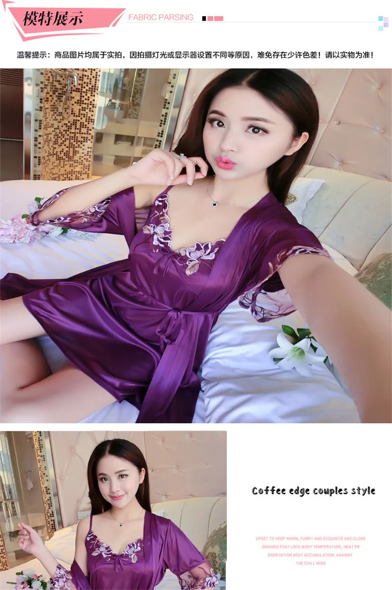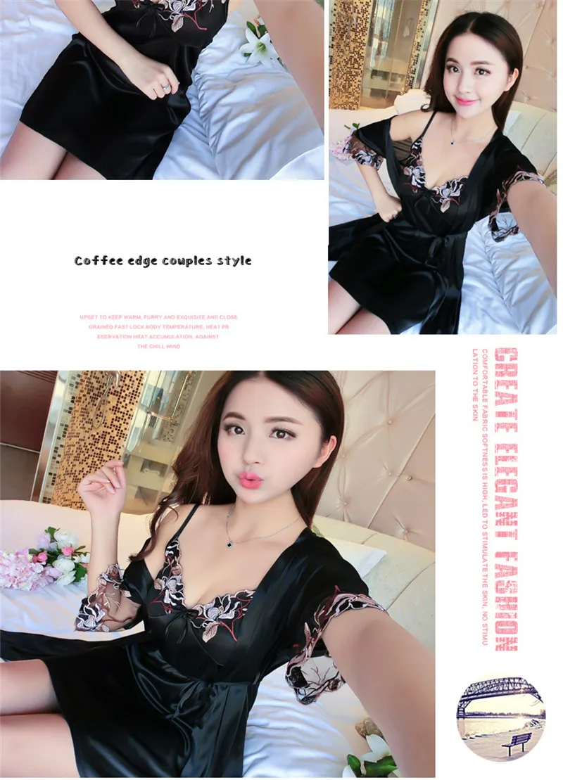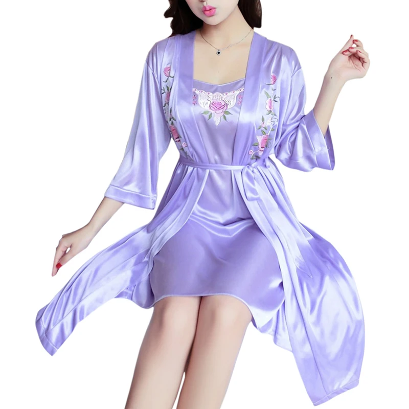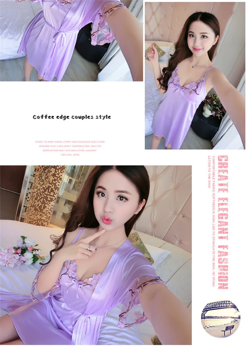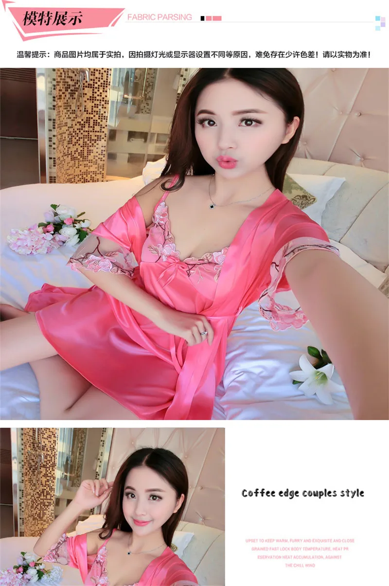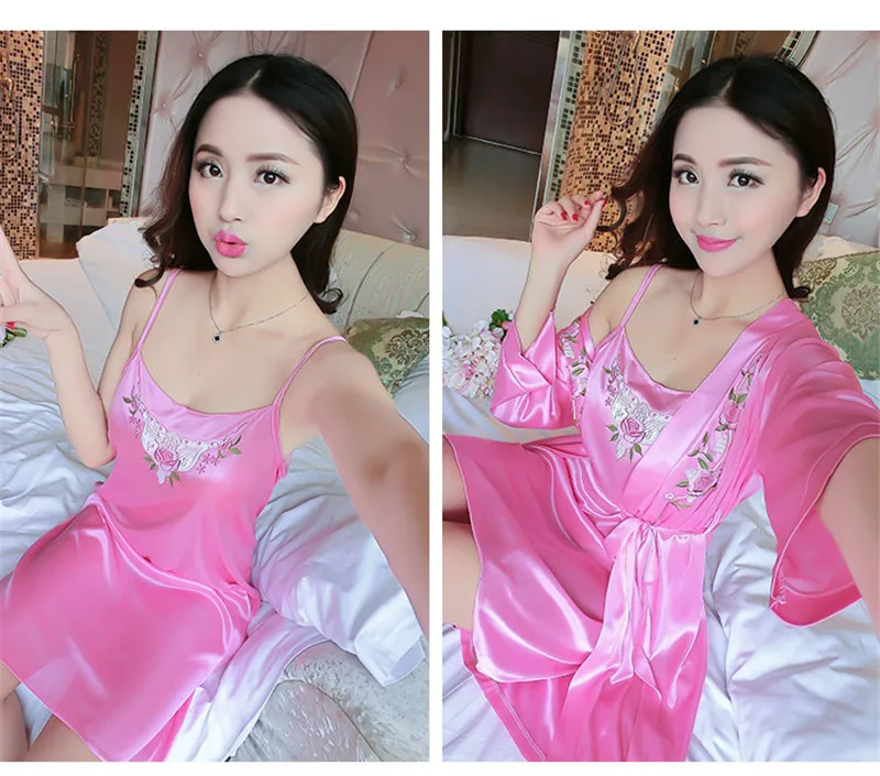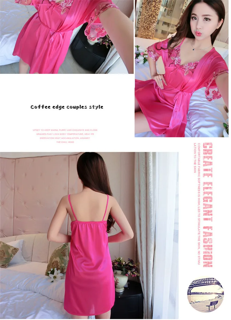 Женская ночная рубашка, из тонкого ледяного шелка, 2 шт., для дома, сексуальное мини-платье на бретелях, наборы халатов с коротким рукавом, женская ночная рубашка, 1930