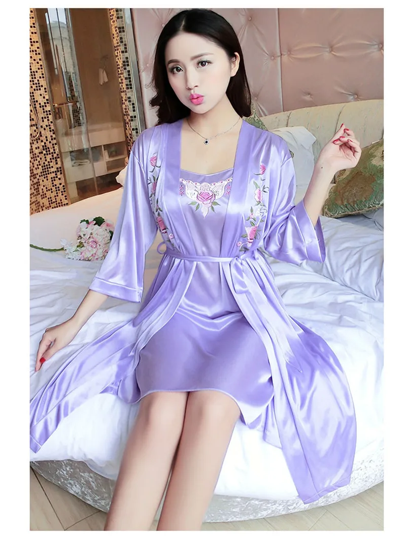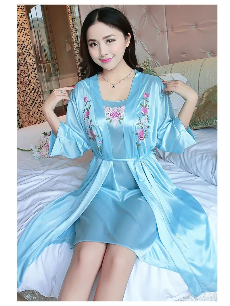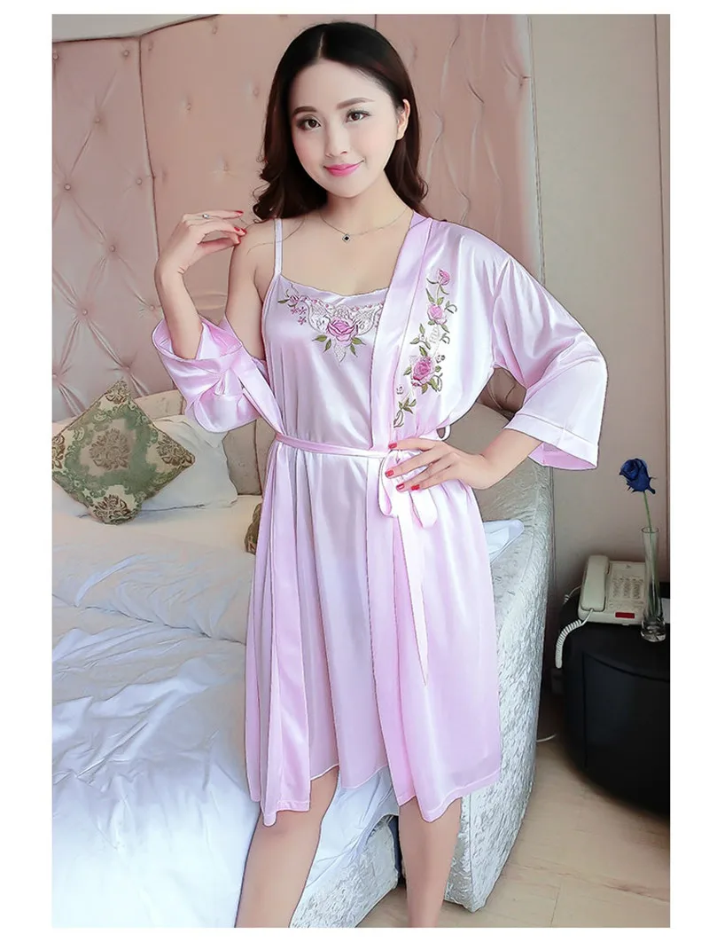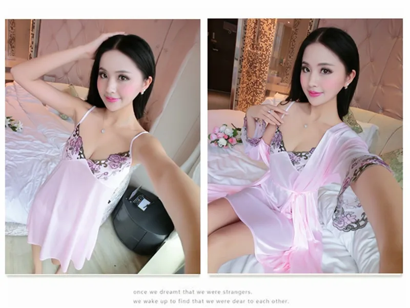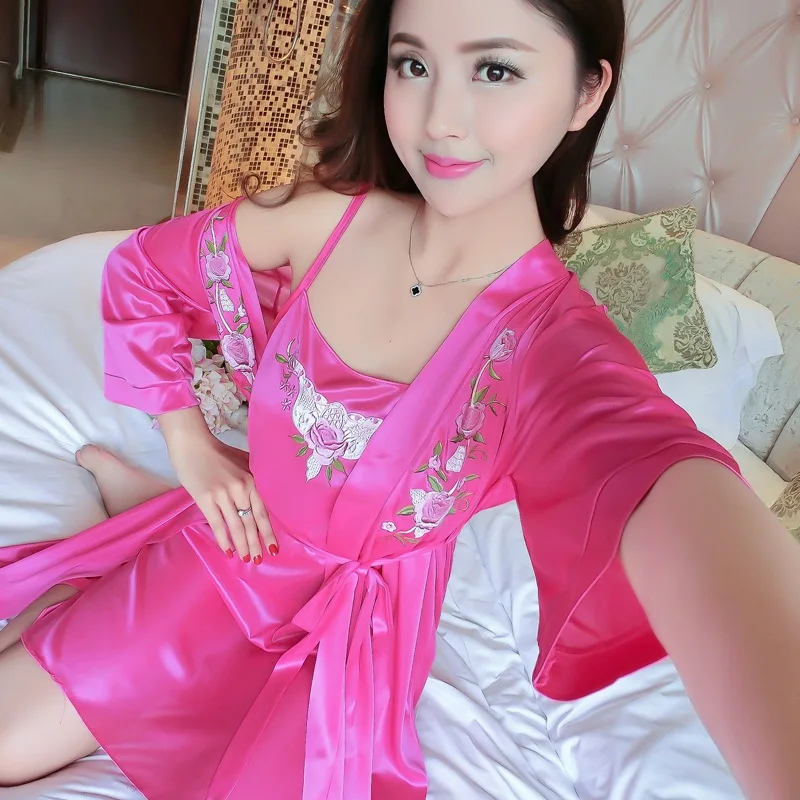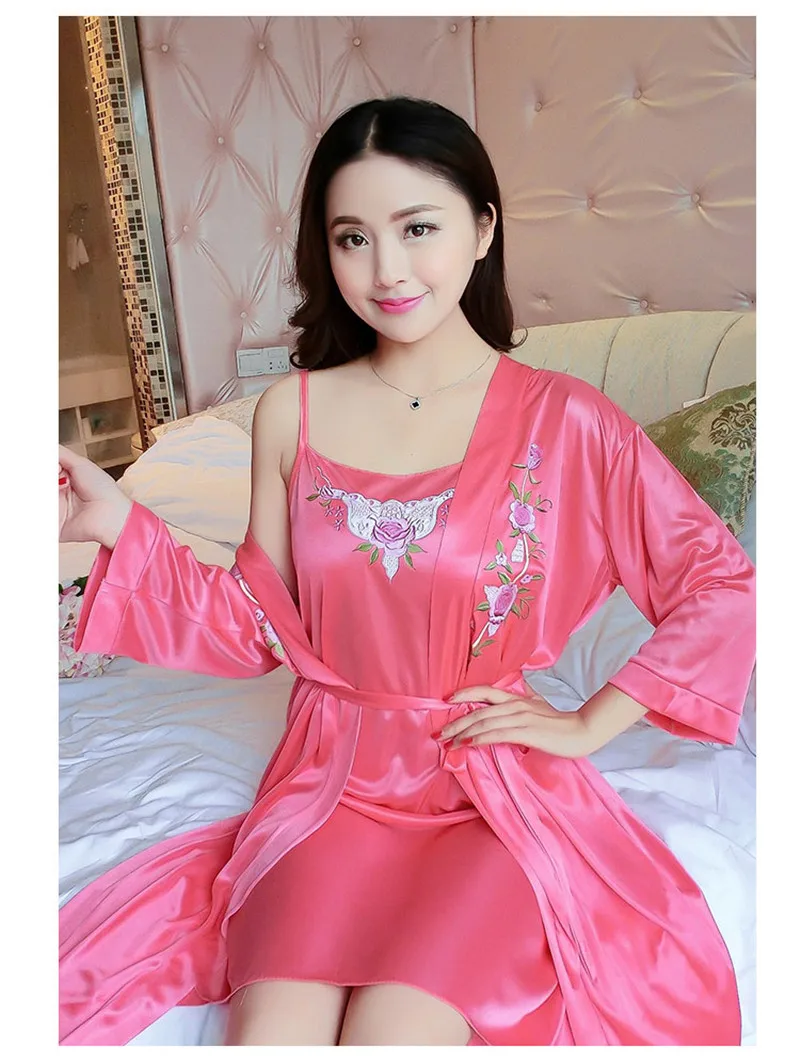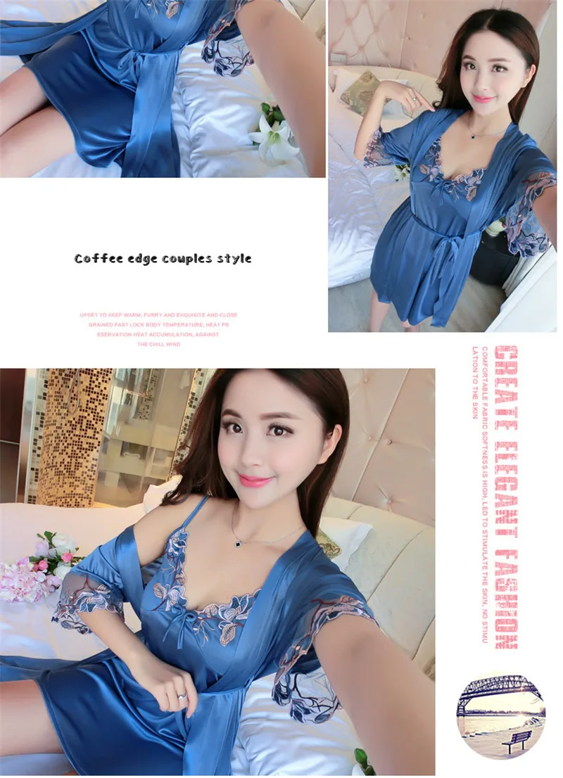 Женская ночная рубашка, из тонкого ледяного шелка, 2 шт., для дома, сексуальное мини-платье на бретелях, наборы халатов с коротким рукавом, женская ночная рубашка, 1930