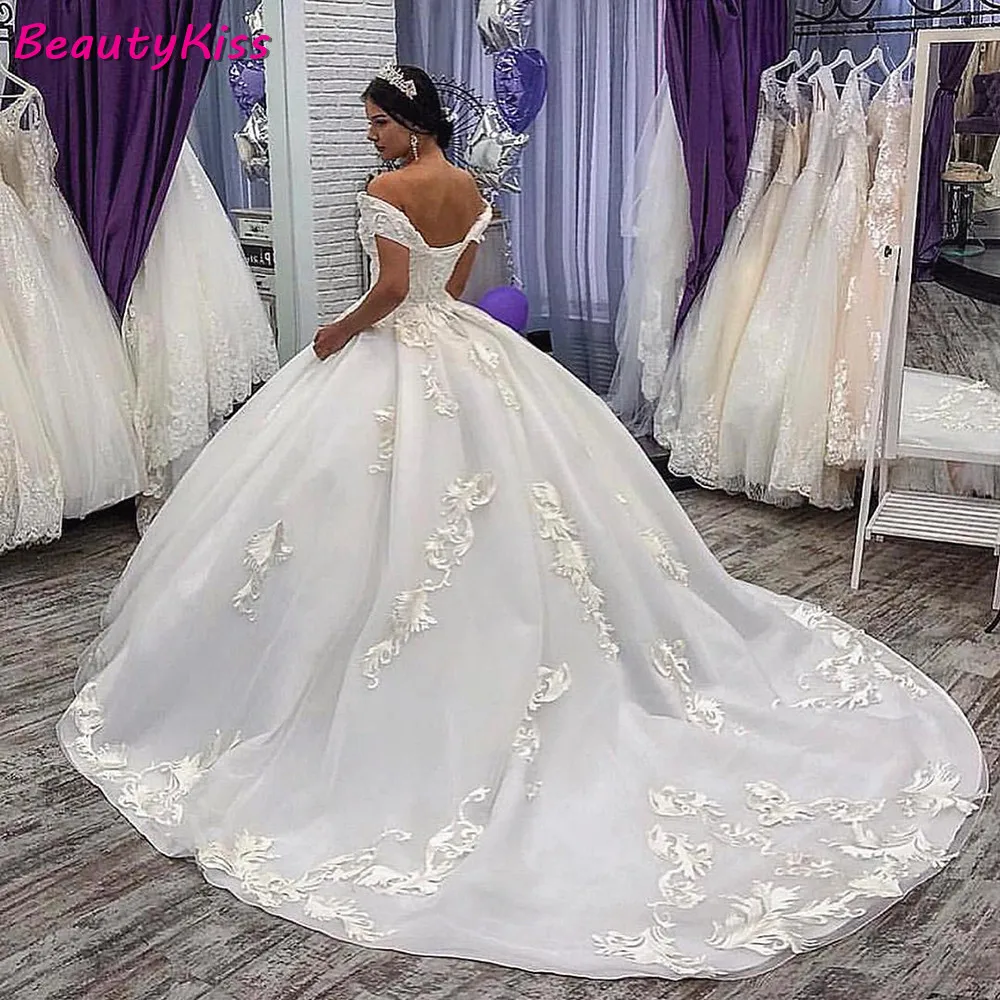 Романтическое бальное платье принцессы, свадебные платья, искусственная аппликация, сексуальные с открытыми плечами, пышные кружевные свадебные платья из тюля на шнуровке