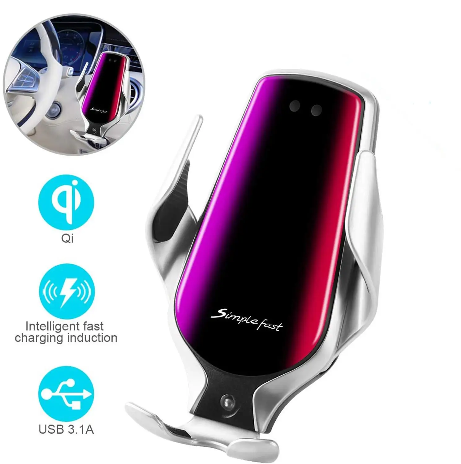 Автомобильный держатель для телефона R3, с умным датчиком, 10 Вт, Qi, простое Быстрое беспроводное зарядное устройство для Iphone 8 Plus, X, Huawei