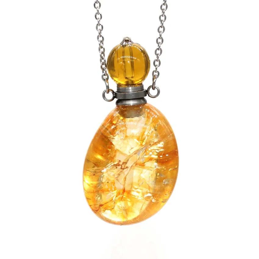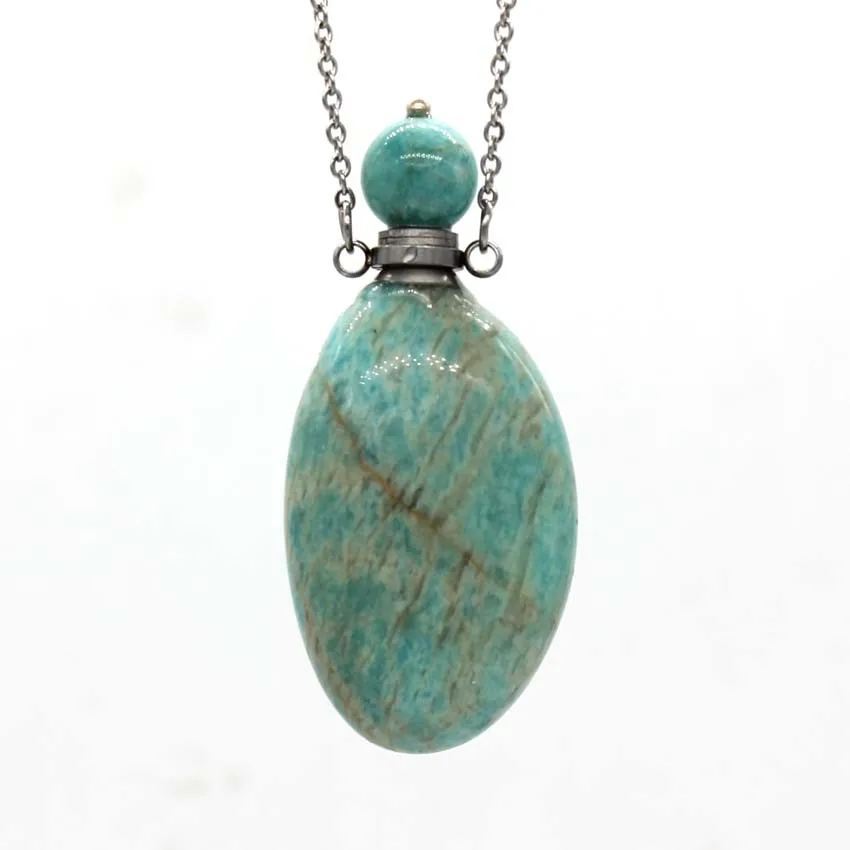 KFT подвеска в виде бутылочки парфюма из кабошона с натуральным драгоценным камнем, исцеляющая чакры, Хрустальные кварцевые подвески из нержавеющей стали, цепочка на ожерелье