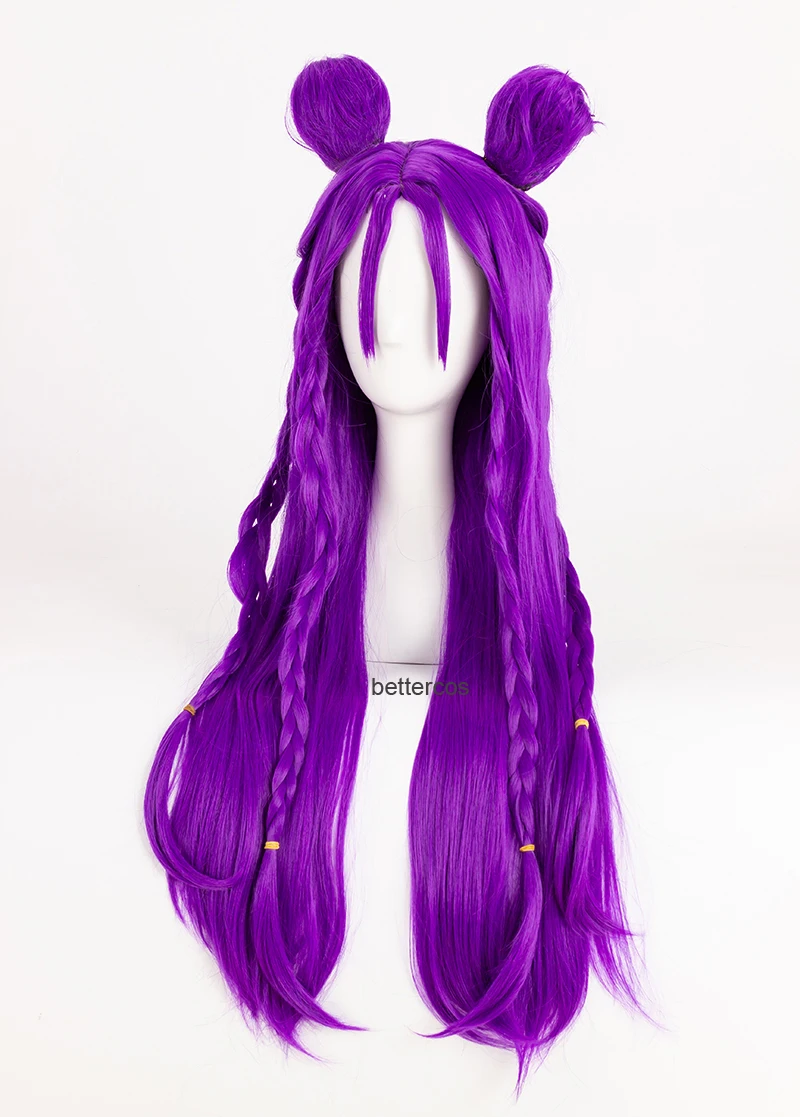 Парик для косплея LOL KDA Kaisa для дочери пустоты Kaisa 80 см длинный фиолетовый прямой термостойкий синтетический парик + шапочка для парика