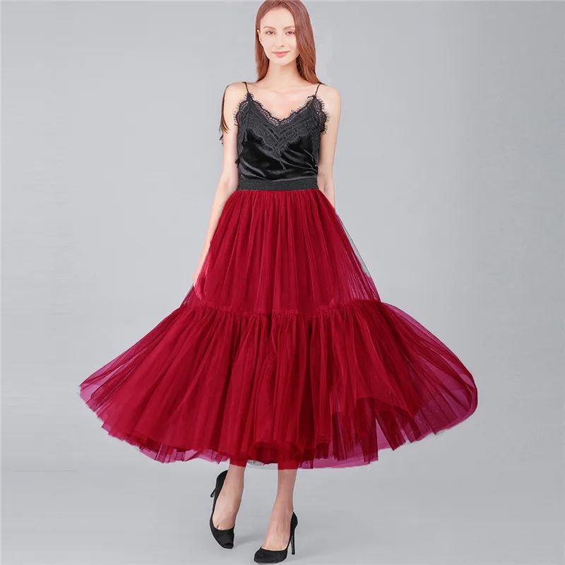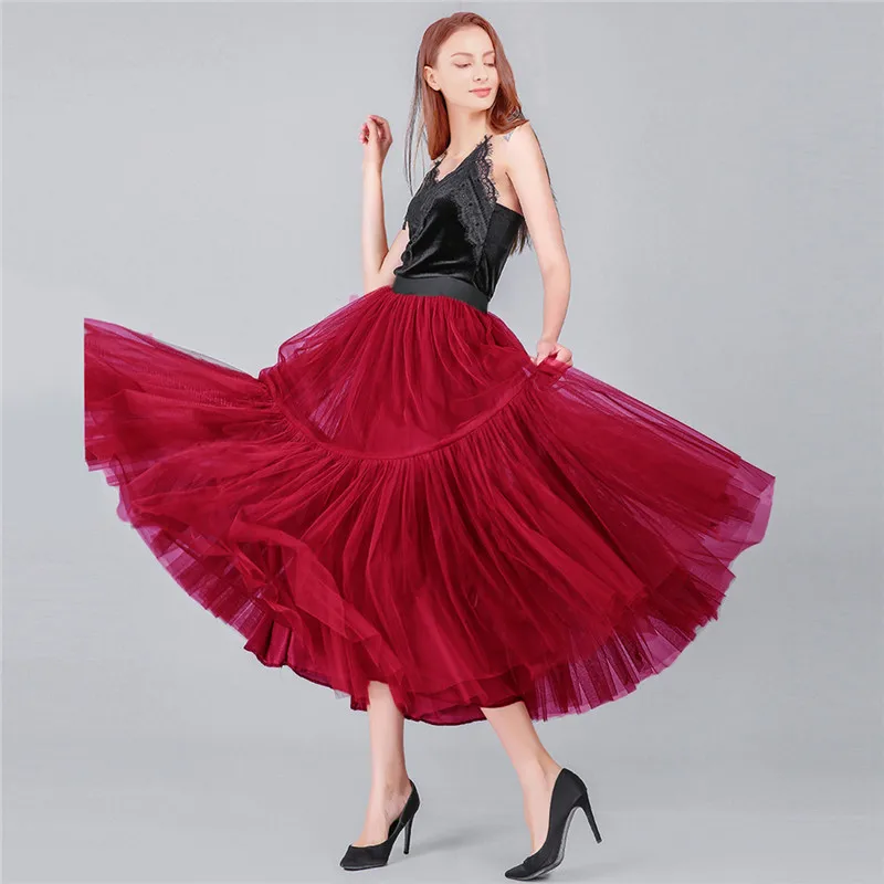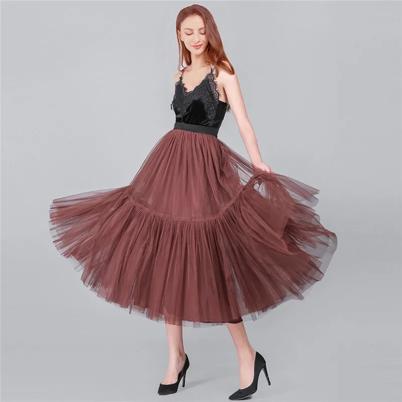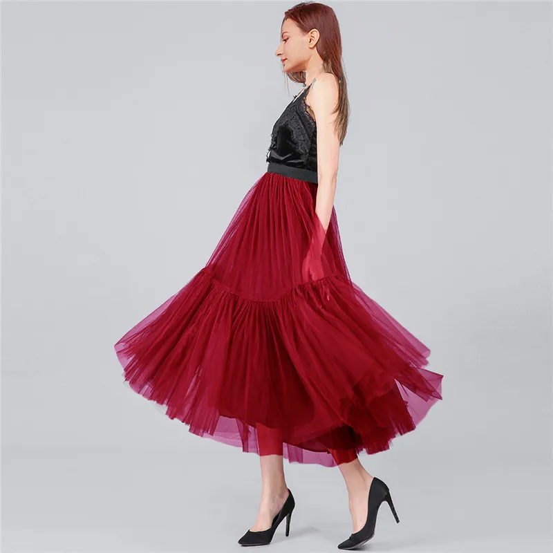 Юбка-пачка Женская плиссированная трехслойная, Тюлевая сетчатая Милая эластичная миди-юбка для подружки невесты с высокой талией