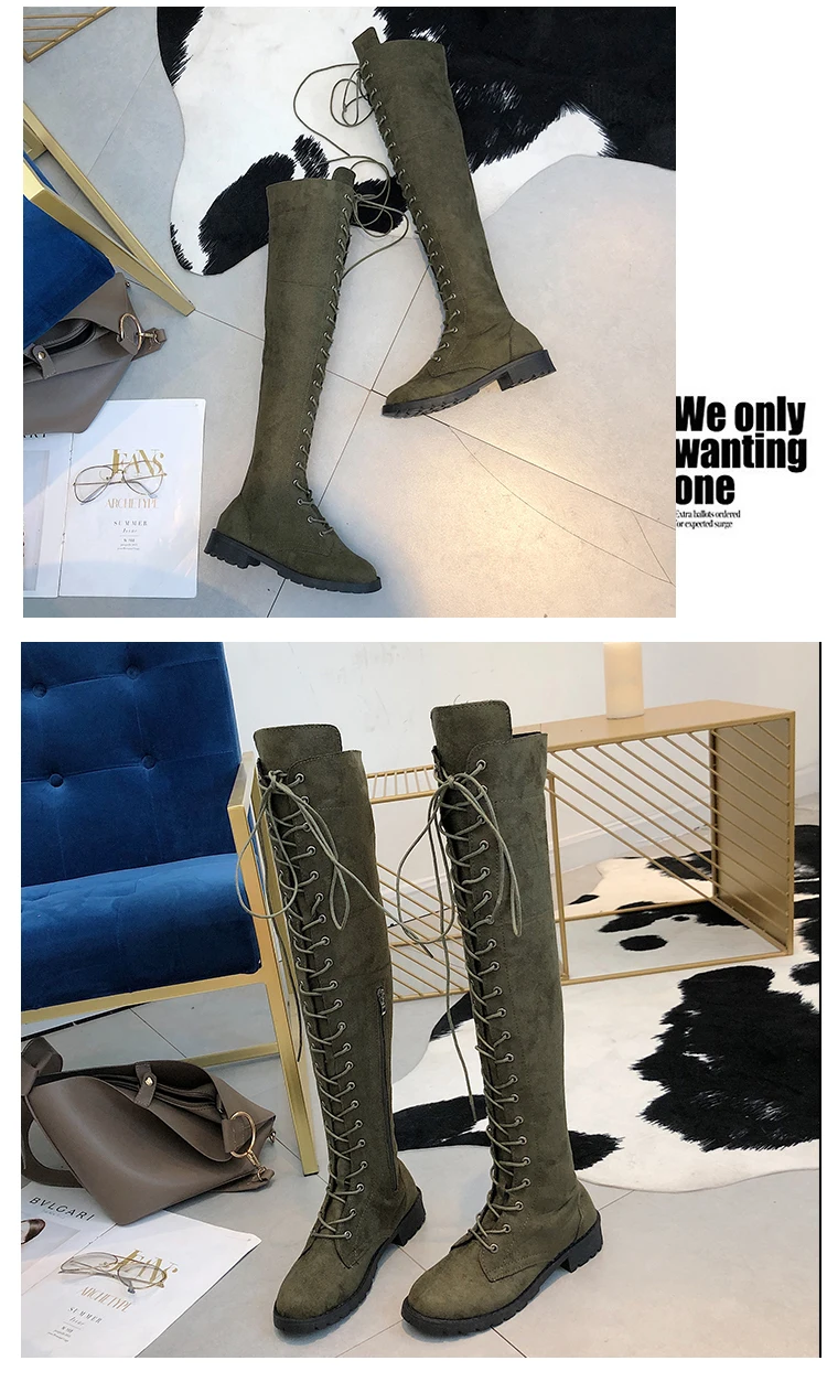 Женские высокие сапоги выше колена, на платформе, со шнуровкой, бол...
