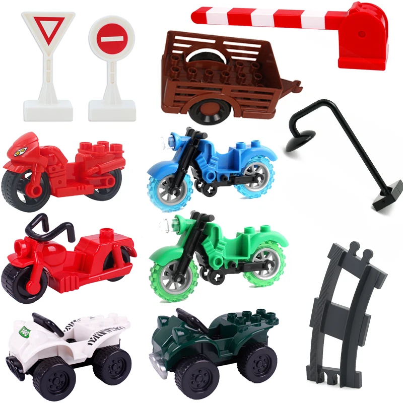 Городские строительные блоки, дорожный знак, поезд, трек, легкая кургана светильник игрушки для детей, большой размер, высокотехнологичный автомобиль, мотоцикл