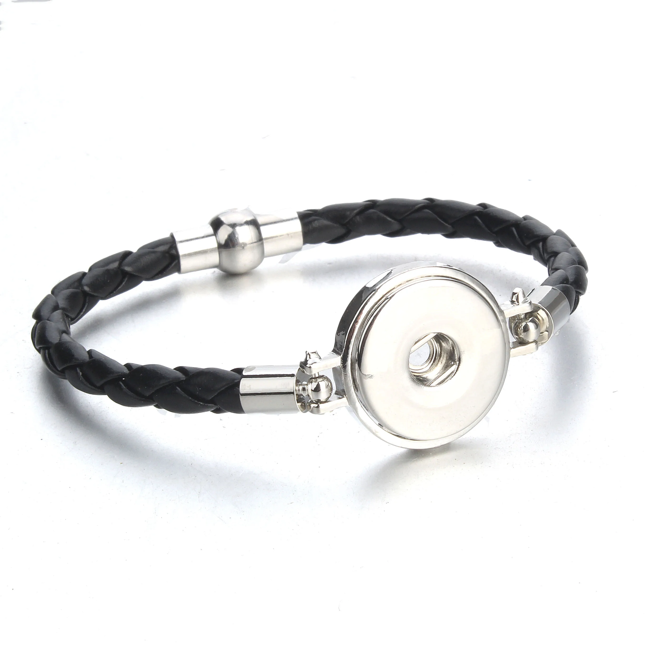 Новые ювелирные изделия, кожаный браслет с защелкой и браслеты, подходит для 18 мм браслетов с защелками-пуговицами для женщин