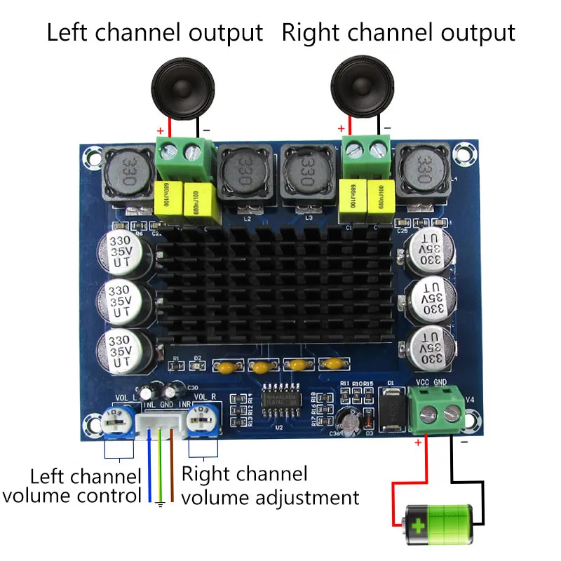 XH-M543 двухканальная плата цифрового усилителя 2*120 Вт, высокомощ...