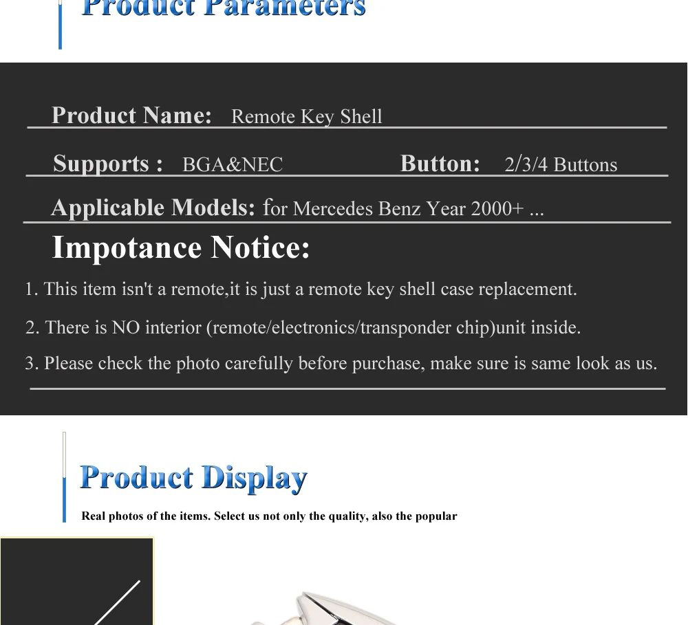 Jingyuqin Smart Remote Key Shell Fob для Mercedes Benz 2000 год + поддерживает оригинальные NEC и BGA 234 кнопки, чехол для ключей, замена