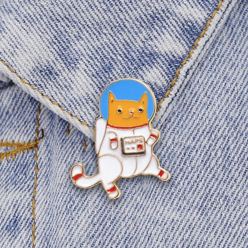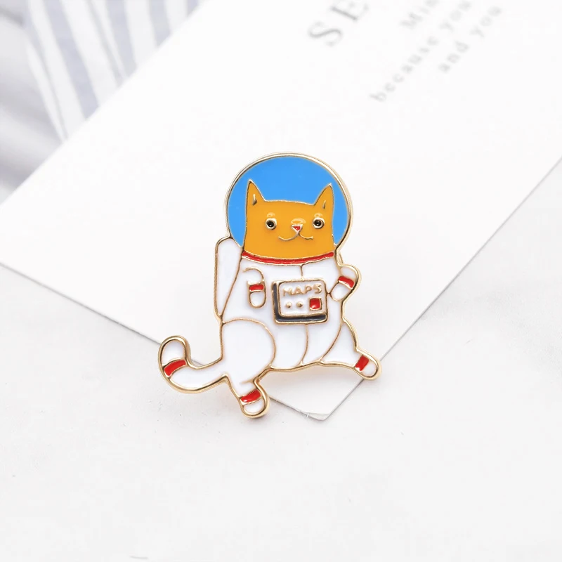 Забавная для кошек собак космонавта эмалированные булавки космические Мультяшные Броши сумка со значком рубашка куртки отворот булавка животное ювелирные изделия подарок для детей друг