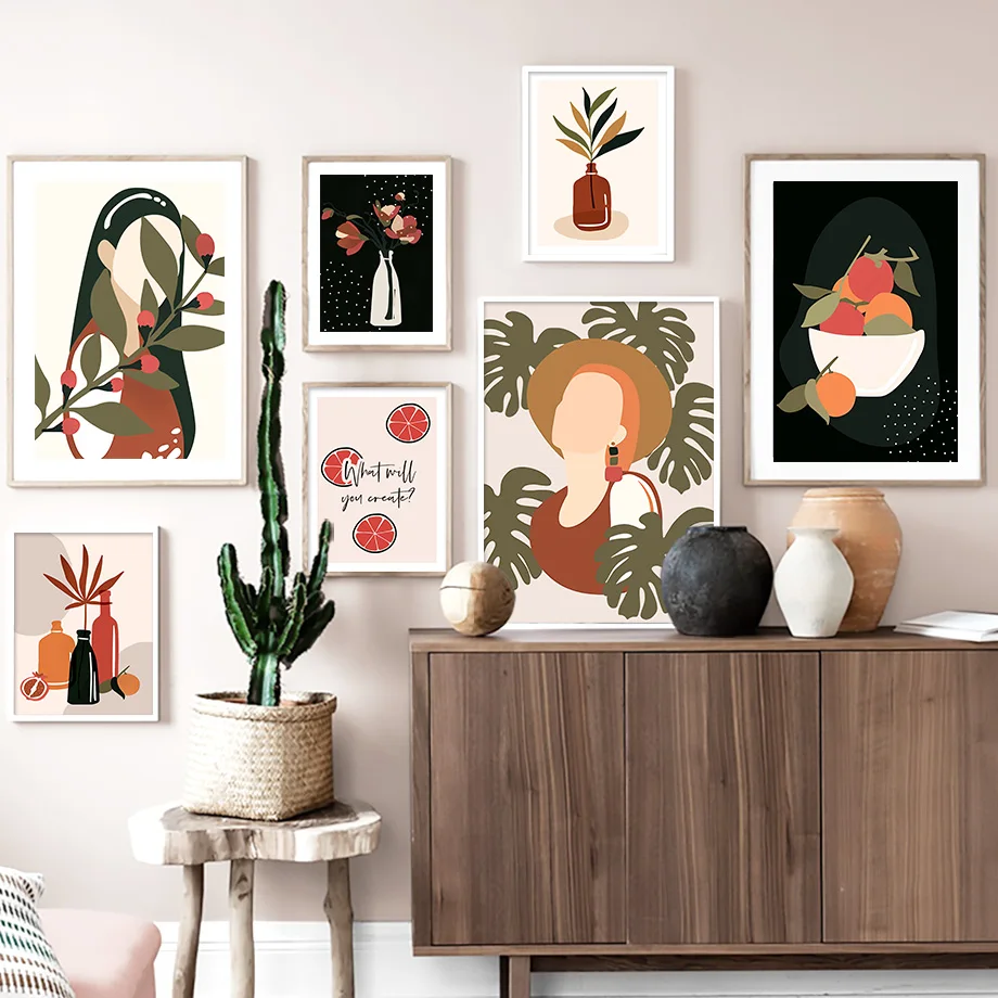 Винтажные постеры и принты в скандинавском стиле для девочек, ваза,...
