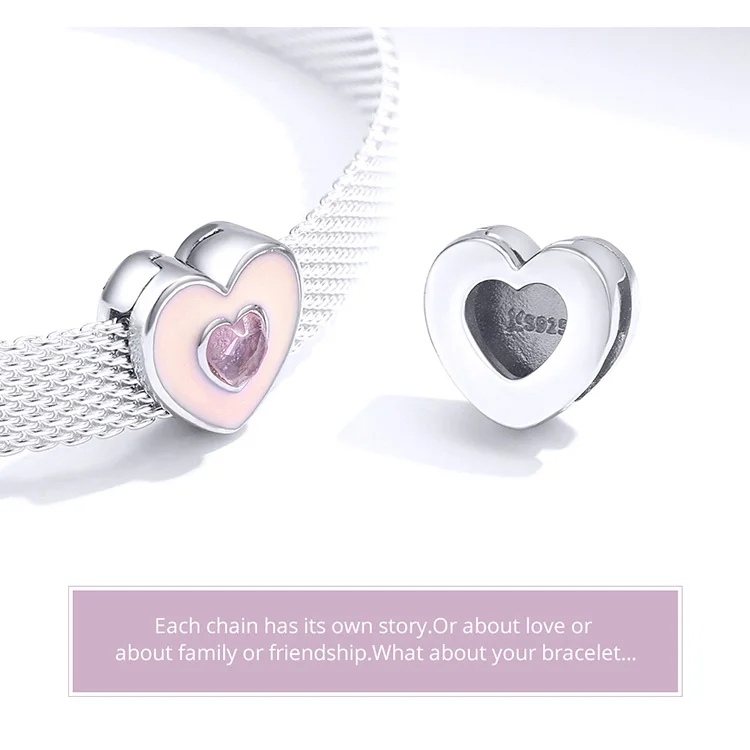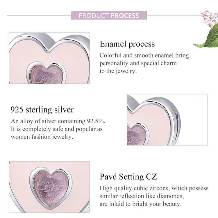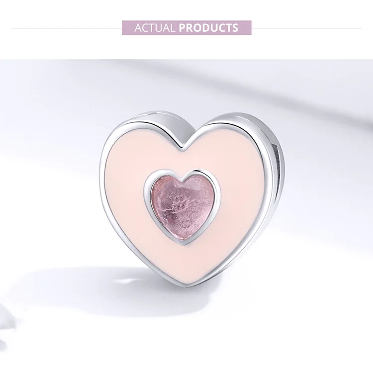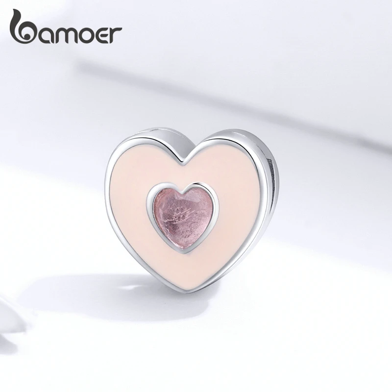 925 пробы bamoer из натуральной кулон с зажимами с эмалью, серебристый, розовый циркон, подходит для оригинальных браслет Reflexions, ювелирные изделия SCX113