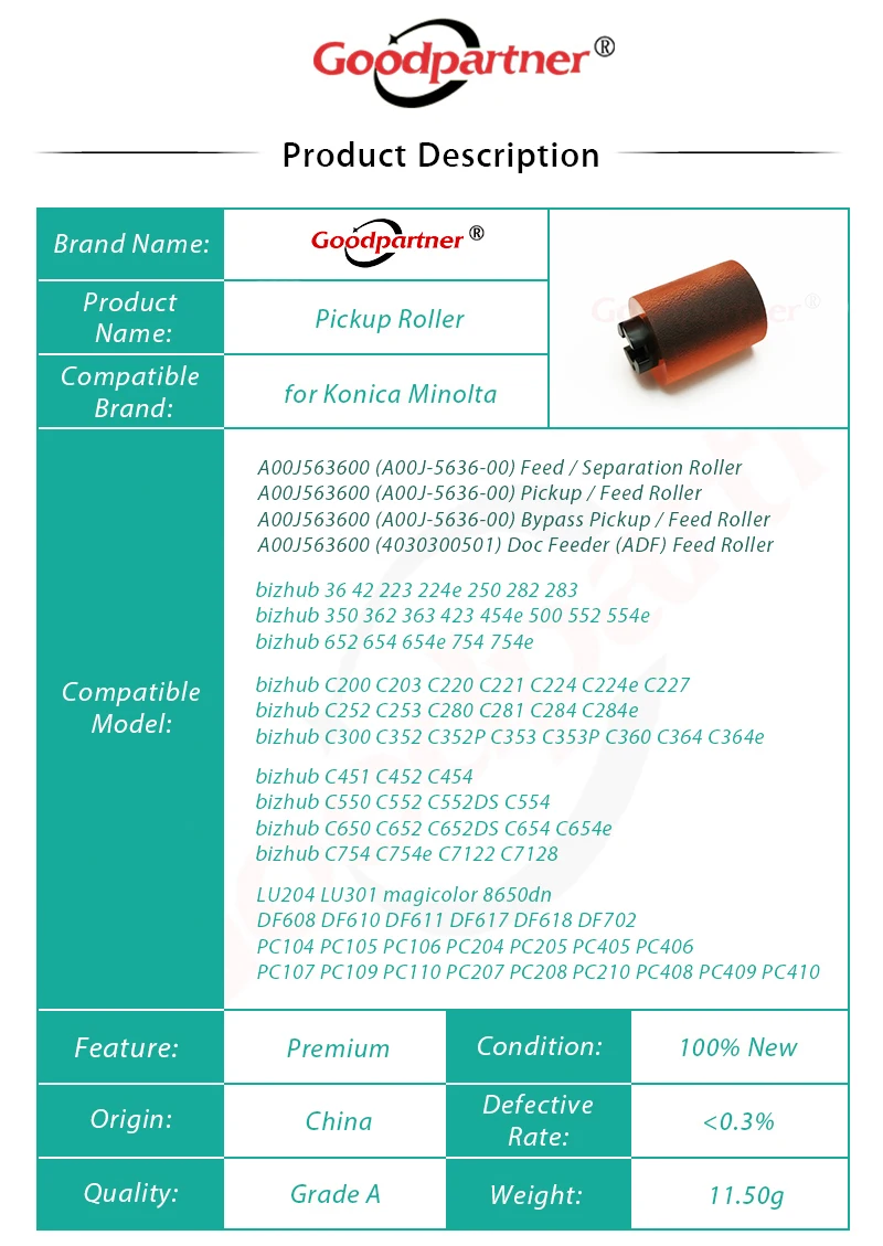 10X A00J563600 bizhub 363 223 283 423 652 пикап-ролик для Konica Minolta C253 C353 C220 C280 C360 C451 C650 C452 C552 C652