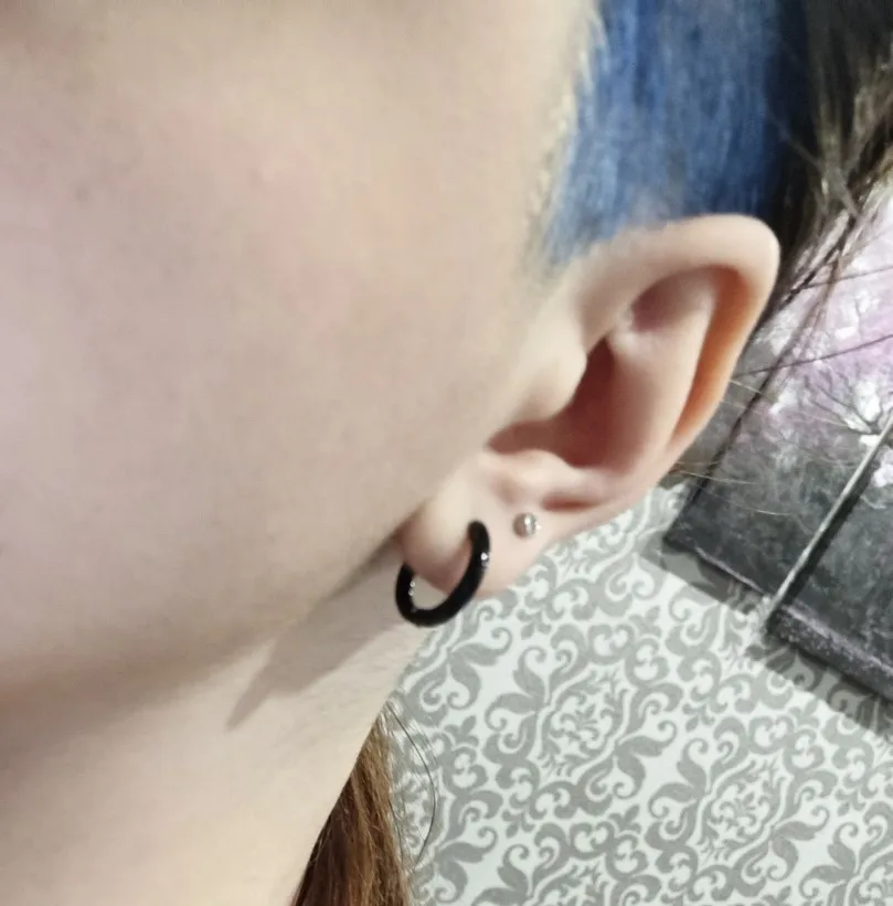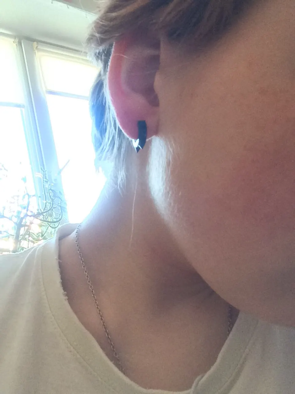 сережки хорошие,но они широкие для моей дырки в ухе,ну я растянула медицинской серьгой(тк она широкая)
