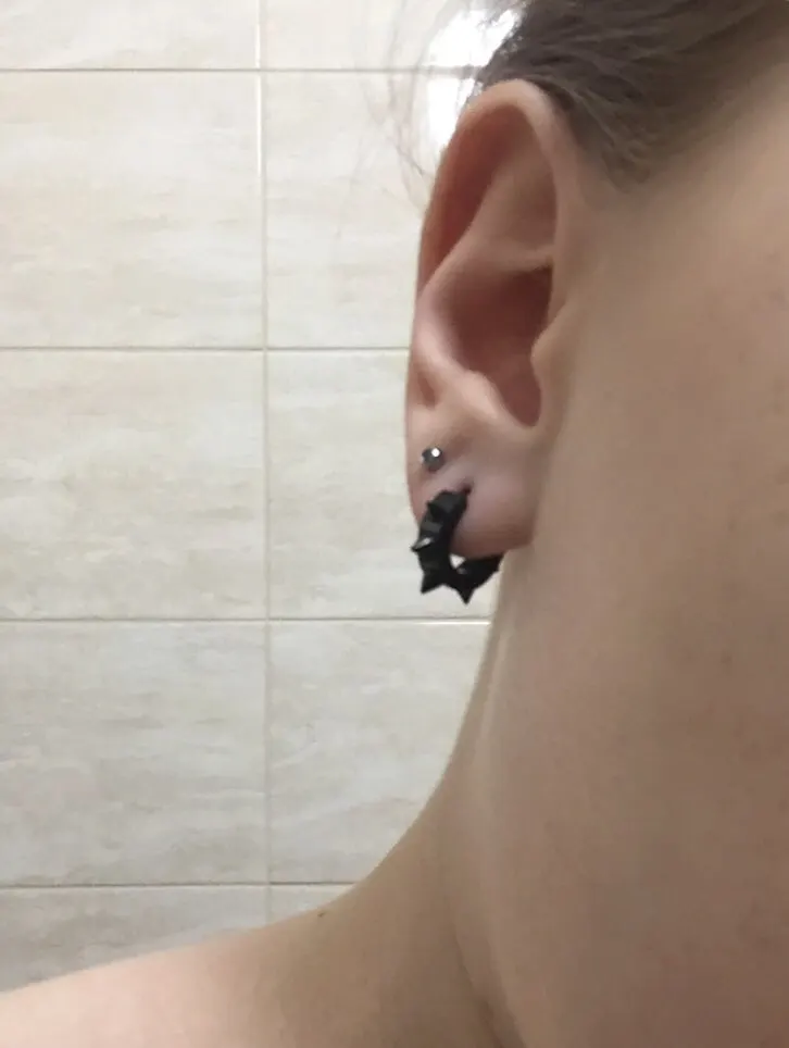Пришли мега-крутые серьги, приятные на ощупь <3 Положили в пакет к более большой посылке, потому и пришло очень быстро. Смотрятся совсем как настоящие растяжки для туннелей, ничем не отличишь, только если по немного торчащей сзади штанге и закрутке. Она, к слову, странная какая-то, у нее форма настолько отполированная, что раскрутить максимально сложно, с ногтями так вообще, но с закручиванием дела обстоят, конечно, полегче ‘:D