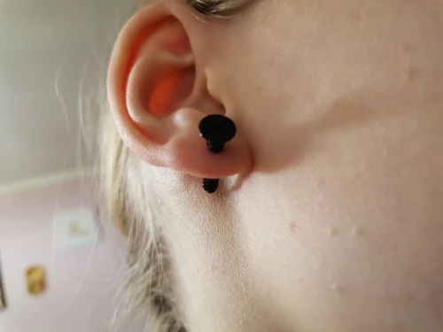 Товар шел больше месяца. Качество хорошее. В ухе выглядит как настоящая улитка, правда иногда бывает что части смотрят в разные стороны. Первое время сложно закрутить шарик, но уже через несколько попыток привыкаешь и особых трудностей это не вызывает.