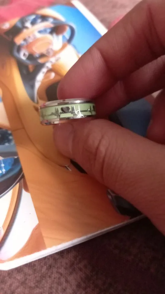 Только получил кольцо, оно реально светится, вроде бы все круто. Меня напрягает только один факт, внутри почему-то какого-то черного цвета кольцо, как будто пацарапали. В целом кольцо прикольное