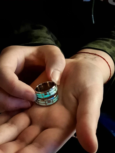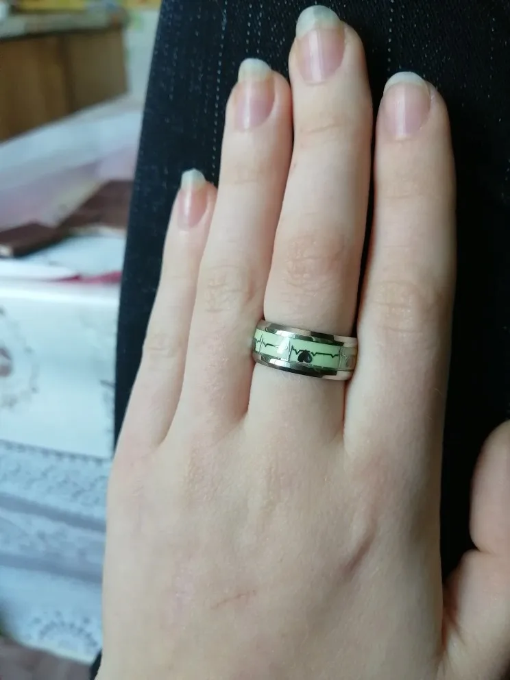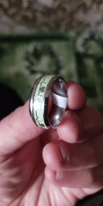 Кольцо приятное на ощупь, на пальце сидит хорошо. В темноте светится очень красиво, мне нравится. Спасибо продавцу.