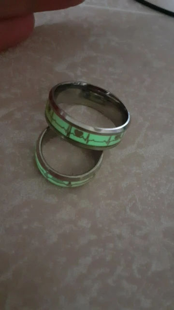 Кольца пришли как обычно (без задержек). В темноте светятся, размерам пальца соответствуют, нареканий за такую цену нет.