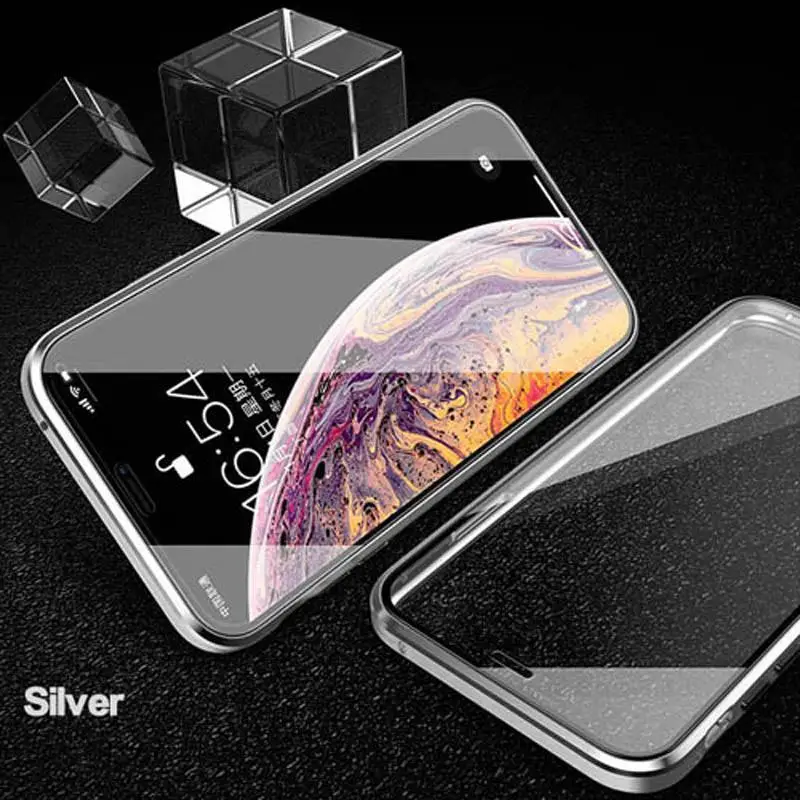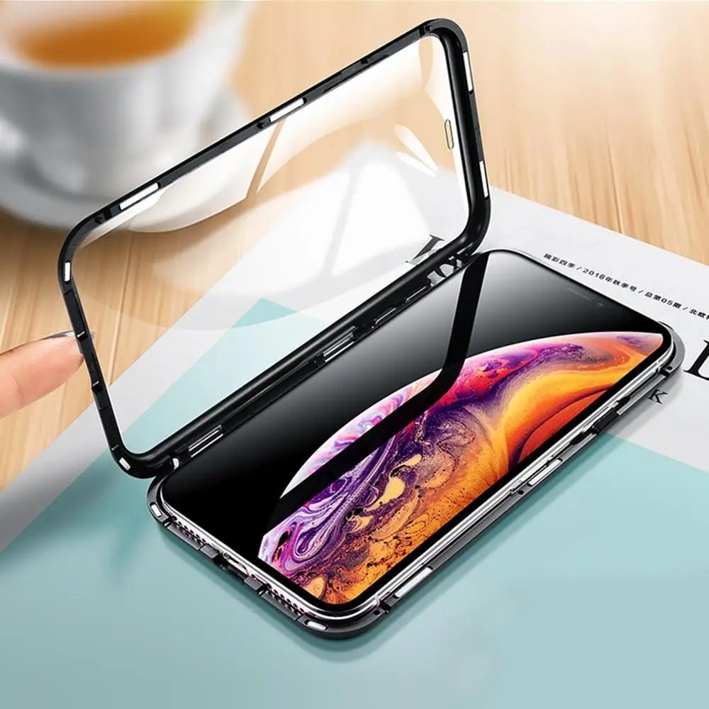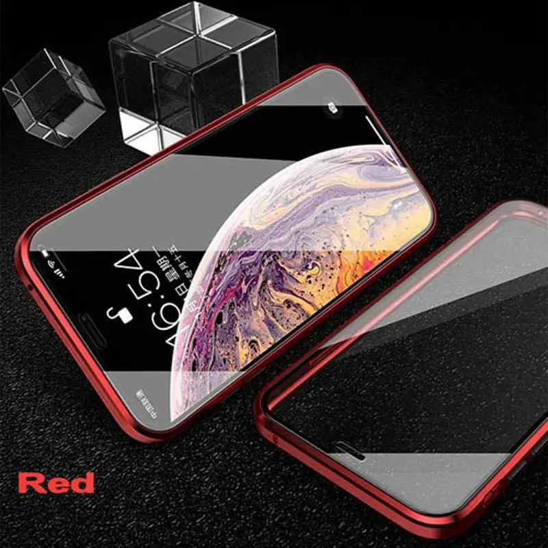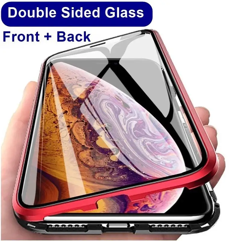 Двухсторонний стеклянный (Передний + задний) металлический магнитный чехол для iPhone