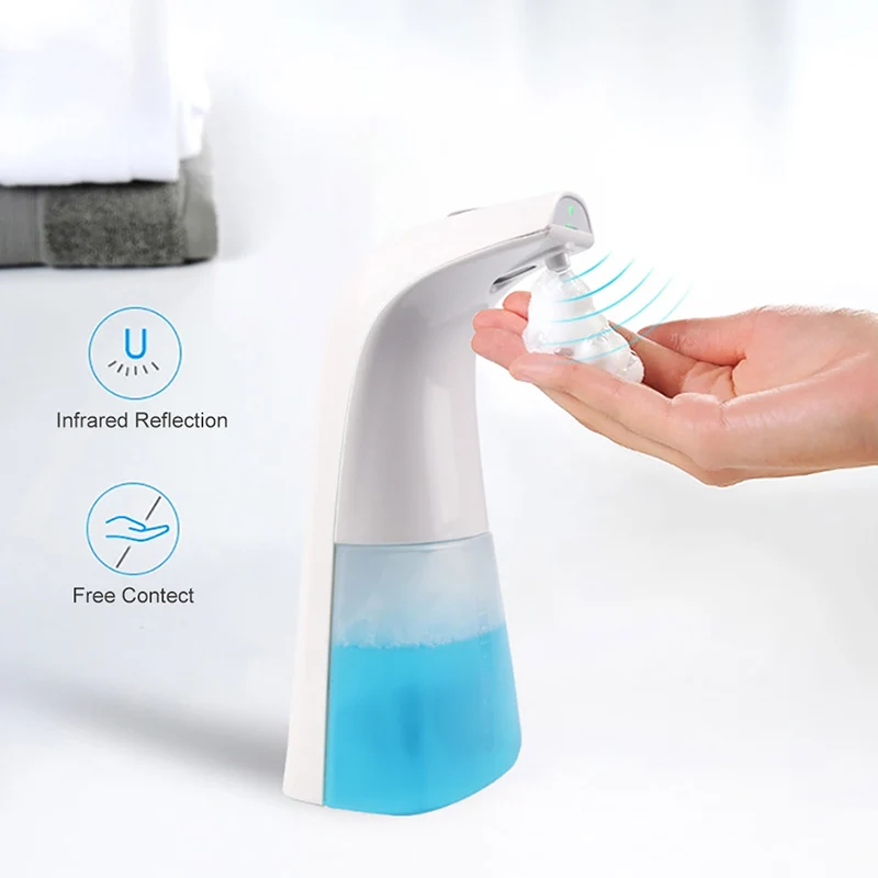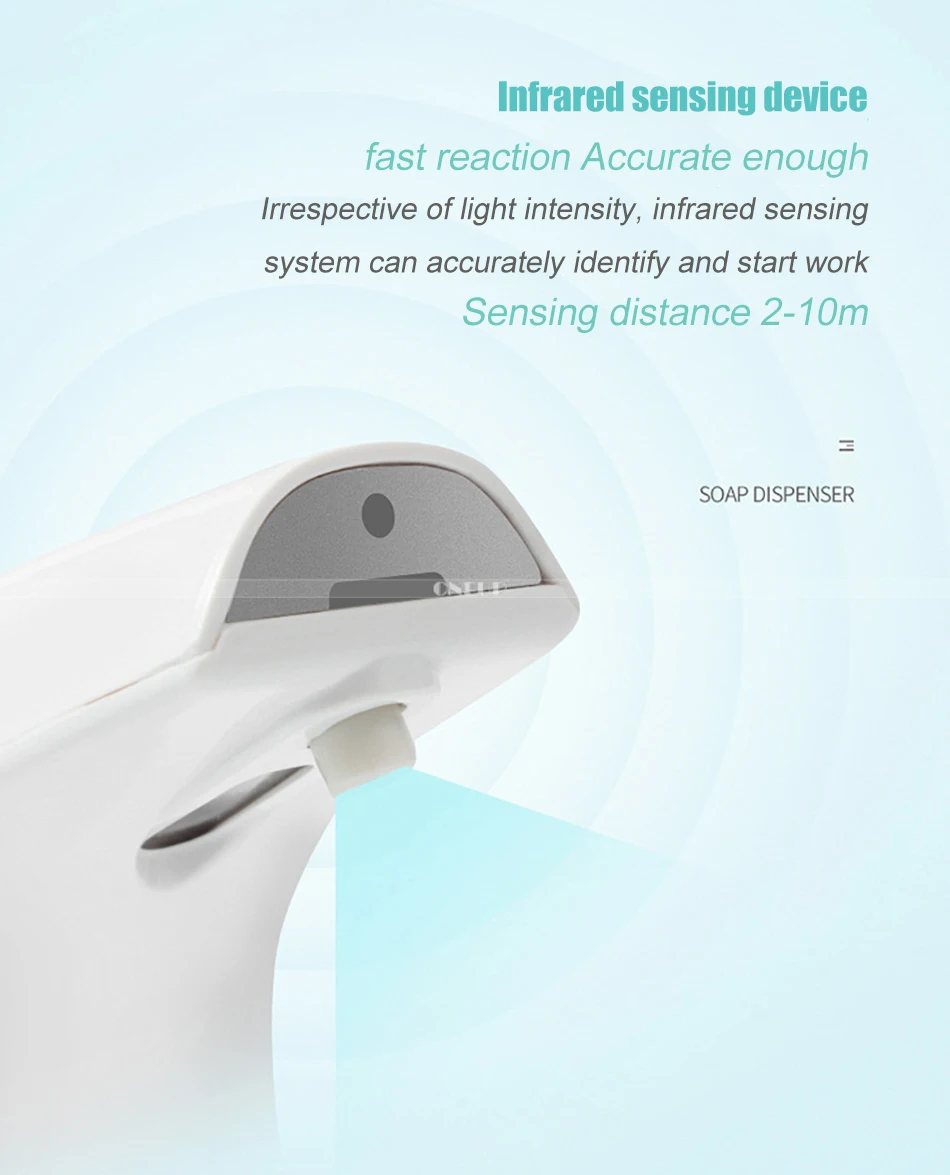 2. Бесконтактный дозатор мыла, распределите пену, если размахивать рукой под соплом к сенсору, Бесконтактный дозатор мыла. Гигиенические и трудовые сбережения. Особенно не нужно нажимать влажной рукой для дозирования при стирке кухонных изделий.