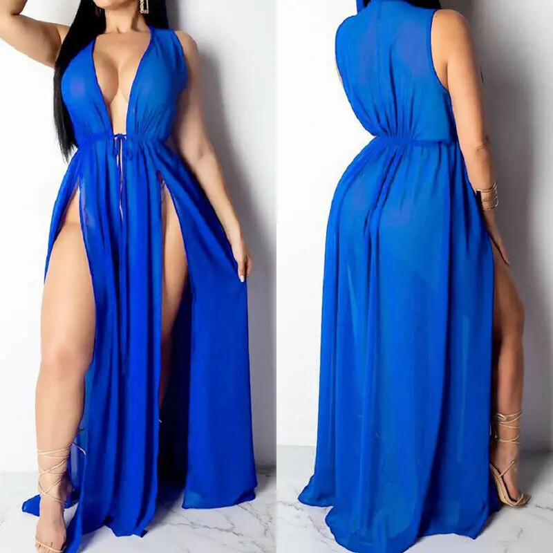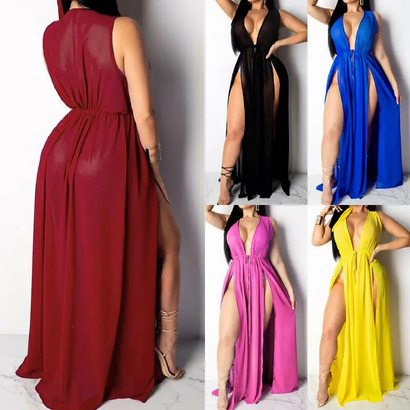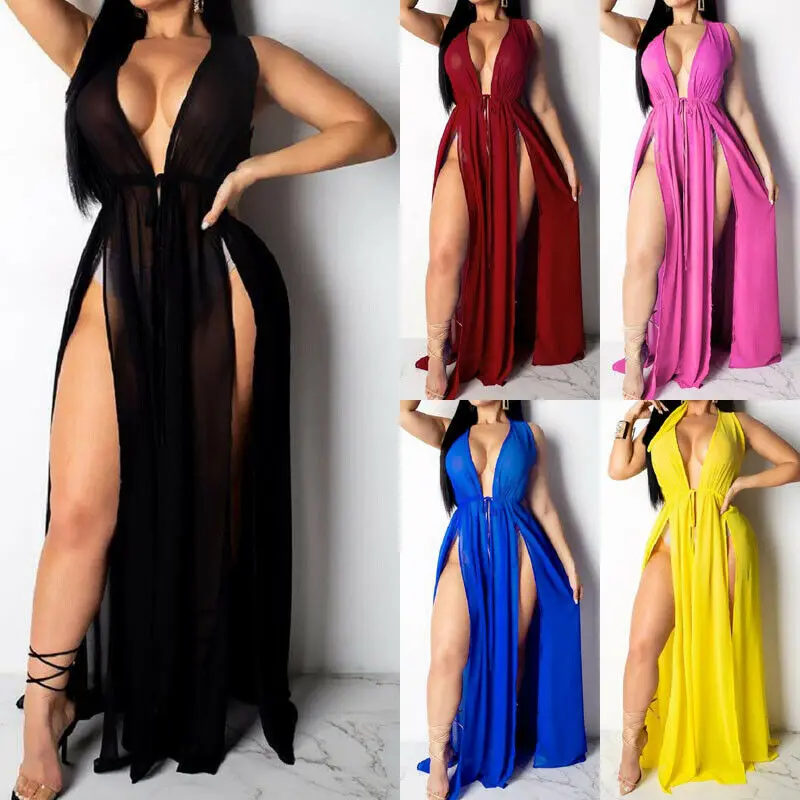 Женское длинное платье-кимоно с глубоким V-образным вырезом