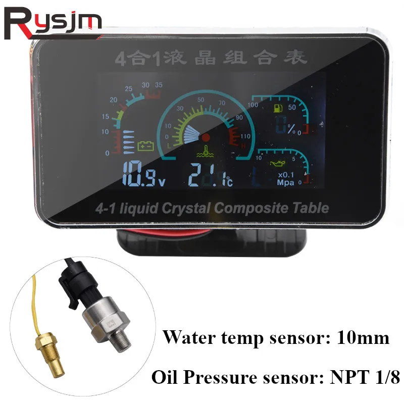 Датчик температуры воды 10 мм + Датчик давления масла 1/8 NPT, цифровой ЖК-дисплей, автомобильное напряжение + давление масла + Температура воды + датчик топлива 12 В 24 В