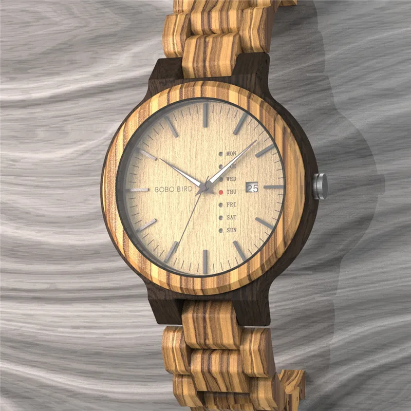 Деревянные мужские часы BOBOBIRD с отображением даты и недели, индивидуальный логотип для бесплатной прямой поставки, звено