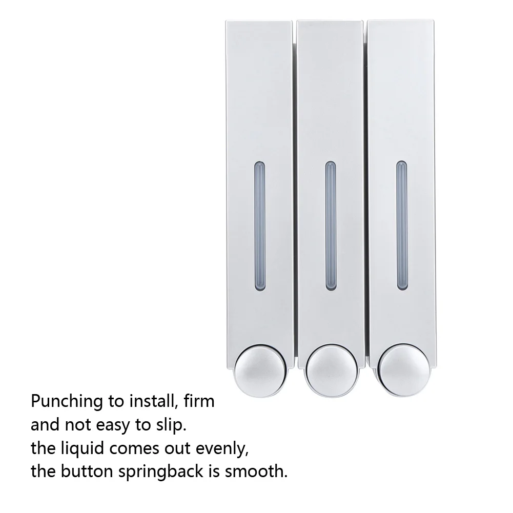 Состояние на 100% абсолютно новый Тип изделия: дозатор жидкого мыла Материал: АБС-пластик Цвет: белый, серебристый, черный (по желанию) Емкость: 420 мл * 3 Размер (LxWxT): прибл. 280x153x9 0 мм/11x6x3.5in Метод: нажмите Установка: настенное крепление