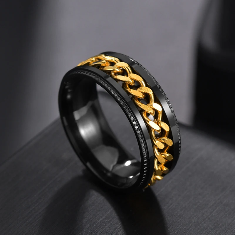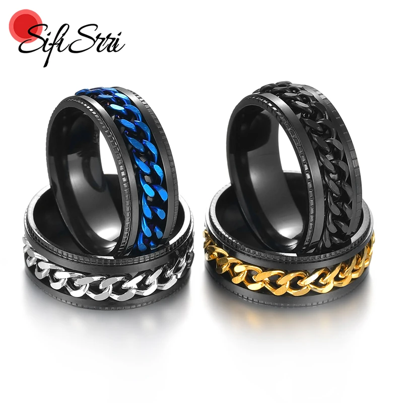 Кольцо Sifisrri в стиле панк, 8 мм, Спиннер из нержавеющей стали, для мужчин, черное, синее, вращающаяся цепочка, мужские обручальные кольца, подарок на день рождения