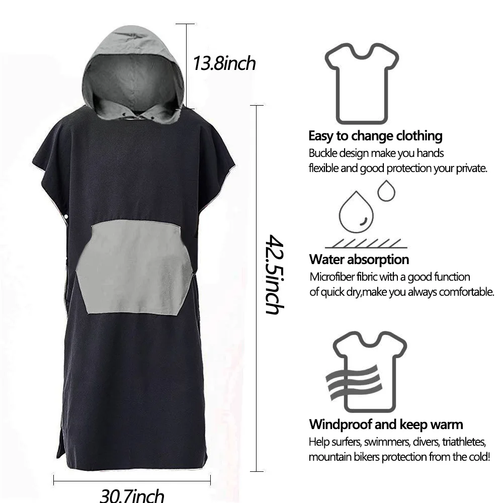 Пляжный халат из микрофибры; Пончо с капюшоном; Быстросохнущий легкий банный халат; Банный халат для Гидрокостюма; Плавательный бассейн для серфинга