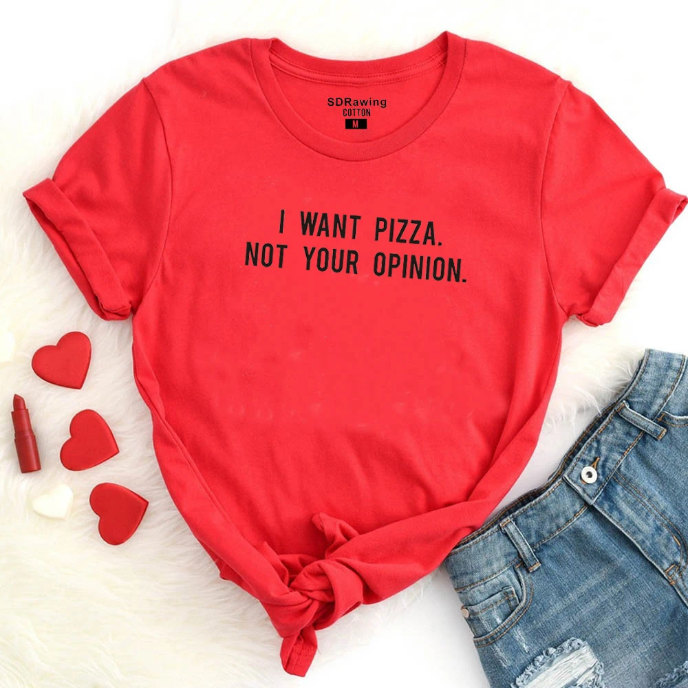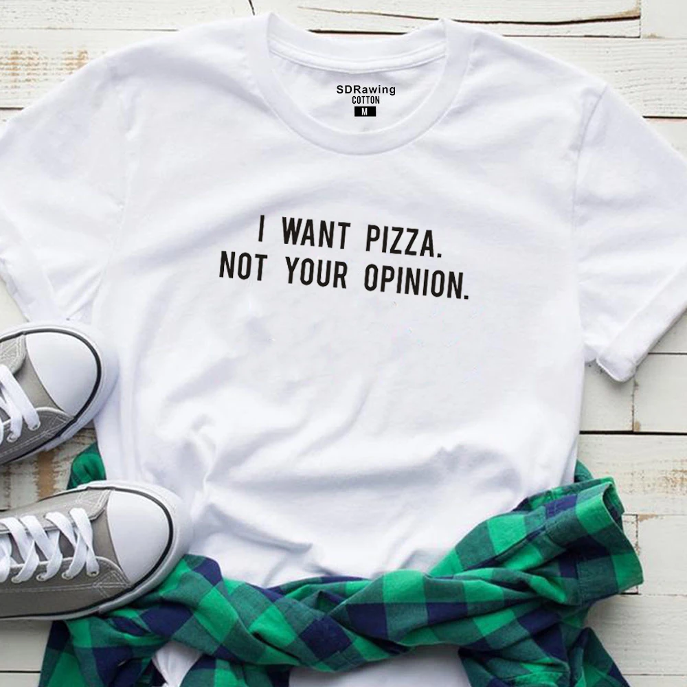 Забавная женская футболка с надписью Я хочу пиццу, это не ваше мнение, хлопковая Повседневная забавная футболка для женщин, хипстерская футболка, Прямая поставка
