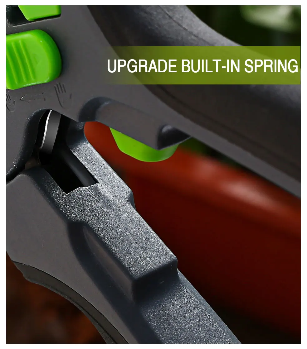 Характеристика:1: эргономичная Нескользящая ручка, прочная, легкая и удобная.2: лезвие из кованой стали, можно отрезать 35 мм ветви, в зависимости от разнообразия3: режущая поверхность чистая и аккуратная, не повреждая ветки, подходит для обрезки ветвей, яслей, цветов и т. д.4: антикоррозийная обработка режущей головки, с защитным замком, более длительный срок службыУпаковочный лист:Как показано