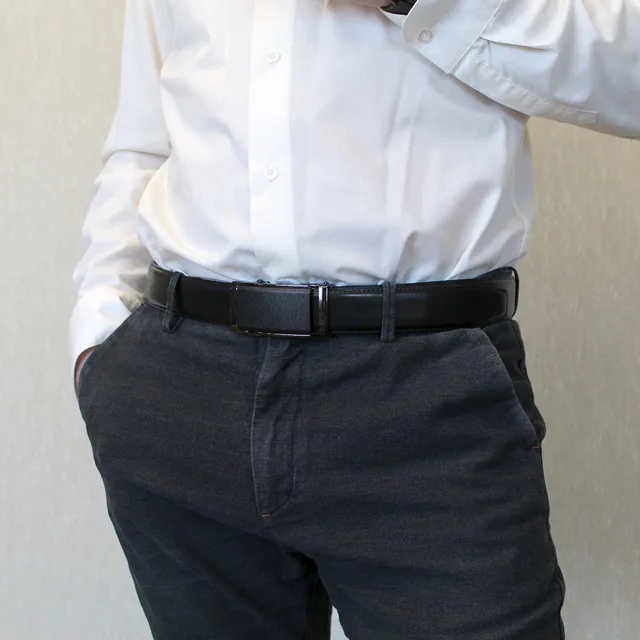 Мужской ремень из натуральной кожи с храповым механизмом и автоматической скользящей пряжкой Размер: от 70 до 160 см