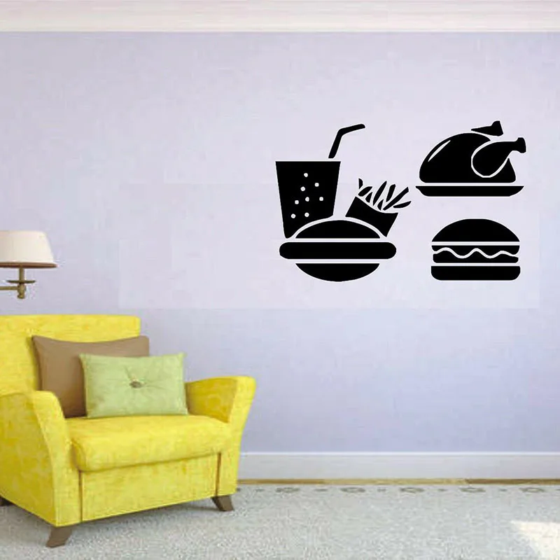 Наклейка на стену быстрого питания, бургер, картофель фри, курица, напитки, двери, окна, виниловые наклейки, кафе, ресторана, кухни, декор интерьера E607