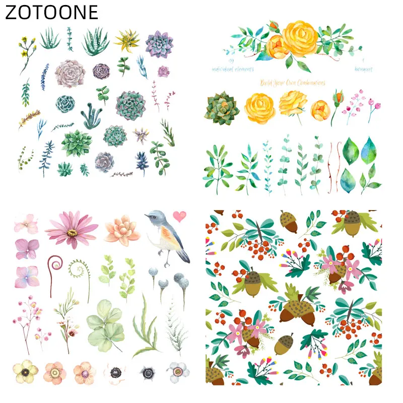 Нашивки для одежды, платья, Термоаппликации, Набор для творчества, цветочные животные, напечатанные аппликации термо-Стикеры для одежды D