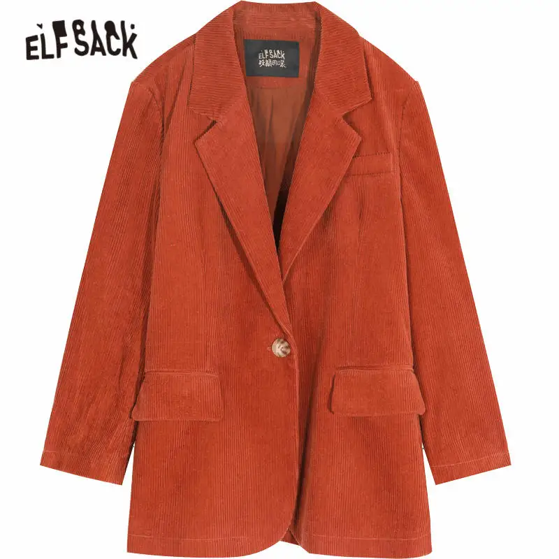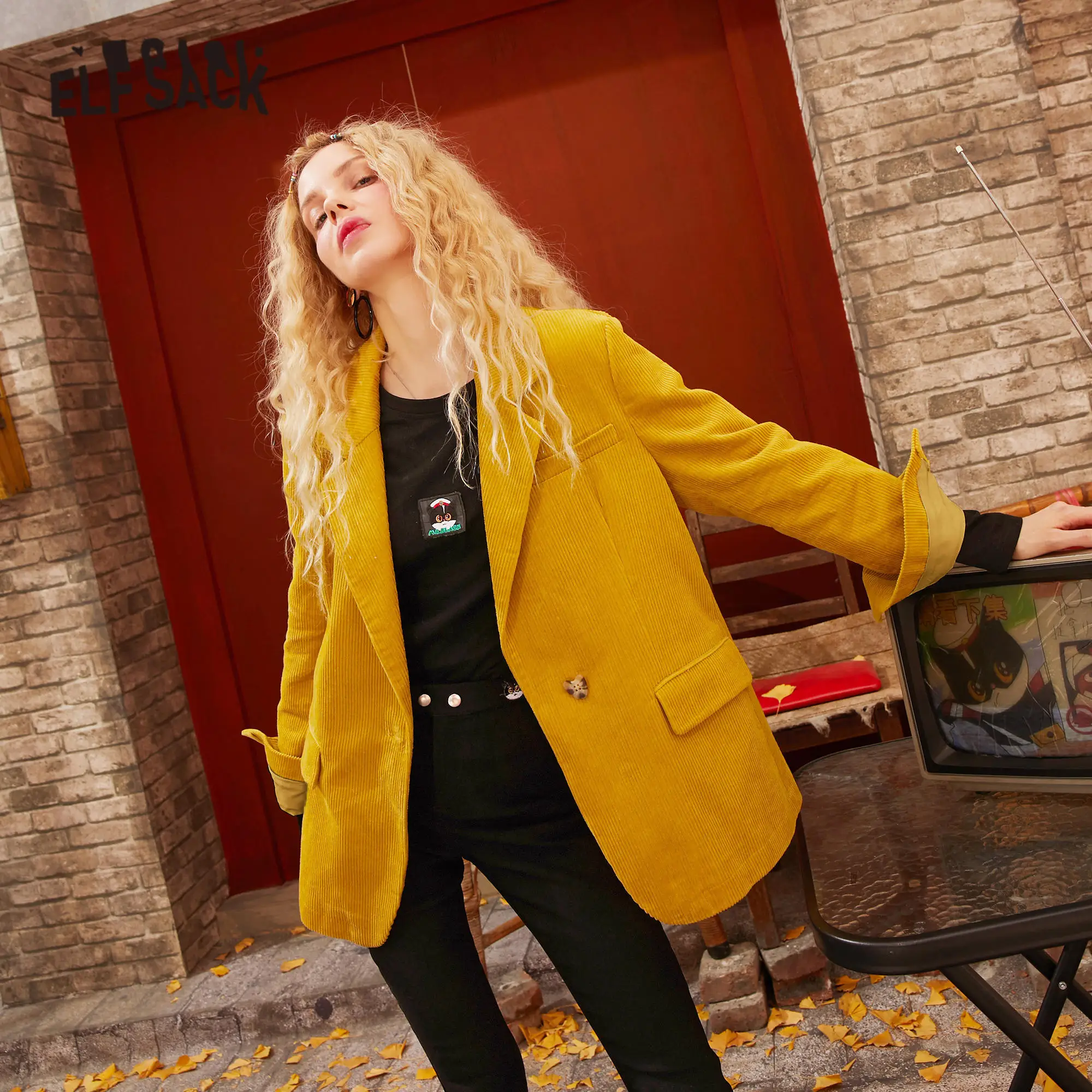 Женский вельветовый Блейзер ELFSACK, желтый однотонный Повседневный вельветовый пиджак карамельной расцветки с длинным рукавом, весна 2020