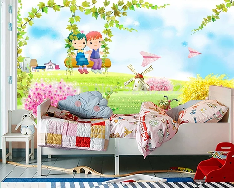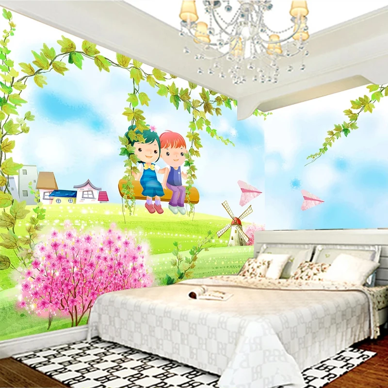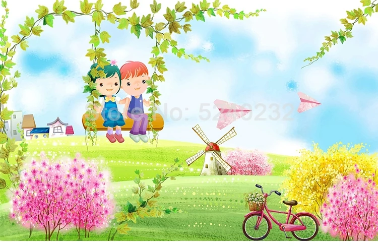Расписанный вручную дом, лист дерева, мультяшный пейзаж, фотообои для детской комнаты, декор для спальни, настенная живопись
