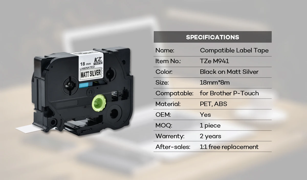 24 мм TzeM951 черная матовая Серебряная ламинированная этикетка Кас...