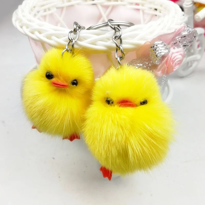 Брелок для ключей, 5 шт., пушистый желтый утиный пух, мягкий Цыплен...
