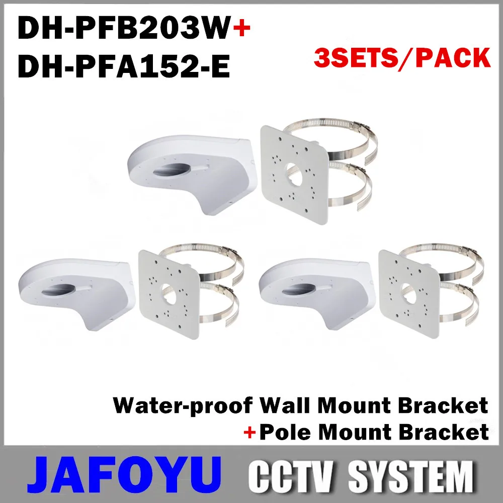 3 компл.упак. в том числе 3 шт. PFB203 водонепроницаемый настенный кронштейн DH-PFB203W + 3 шт. PFA152-E полюсный кронштейн для камеры видеонаблюдения