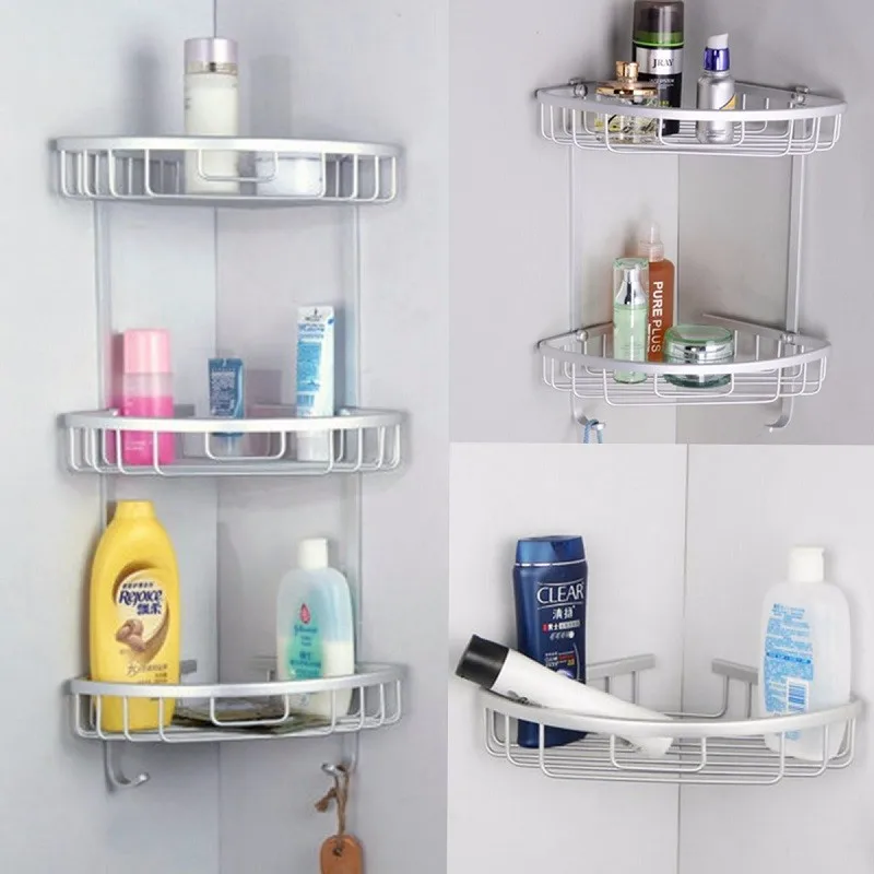 Треугольная алюминиевая полка для ванной, 3 слоя, без перфорации, органайзер для хранения, угловая полка для шампуня, мыла корзинка для косметики, держатель
