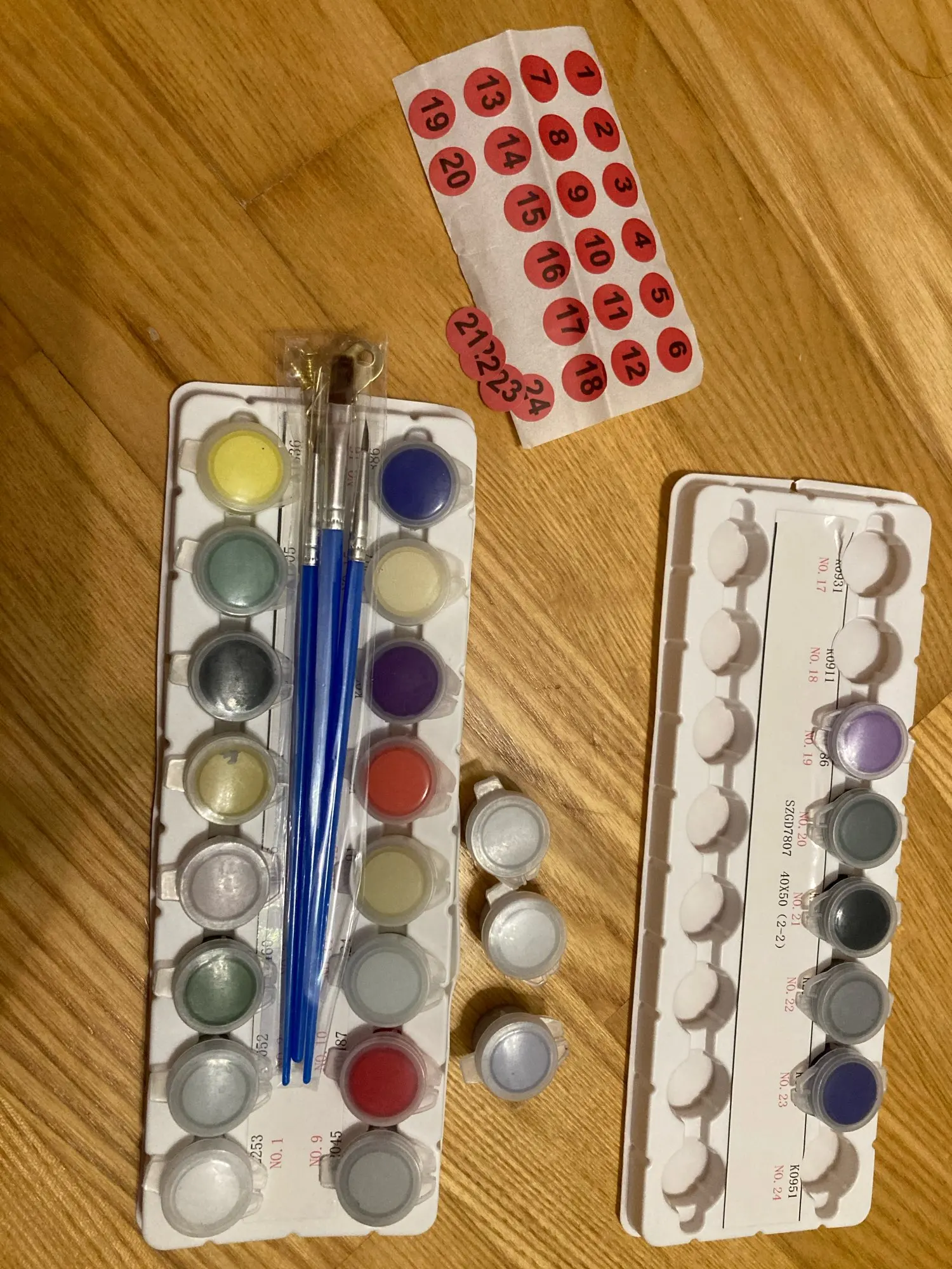 Товар пришёл помятым, хотя упакован был хорошо. Уж не знаю, что с ним в дороге происходило. До этого я всегда получала подобные картины немятыми. Некоторые краски по дороге выпали из ячеек, и теперь невозможно определить какой это номер. Цвета похожи, а бумажки с номерами идут отдельно. Это очень неудобно, если при транспортировке, как у меня, краски выпадают из своего места.