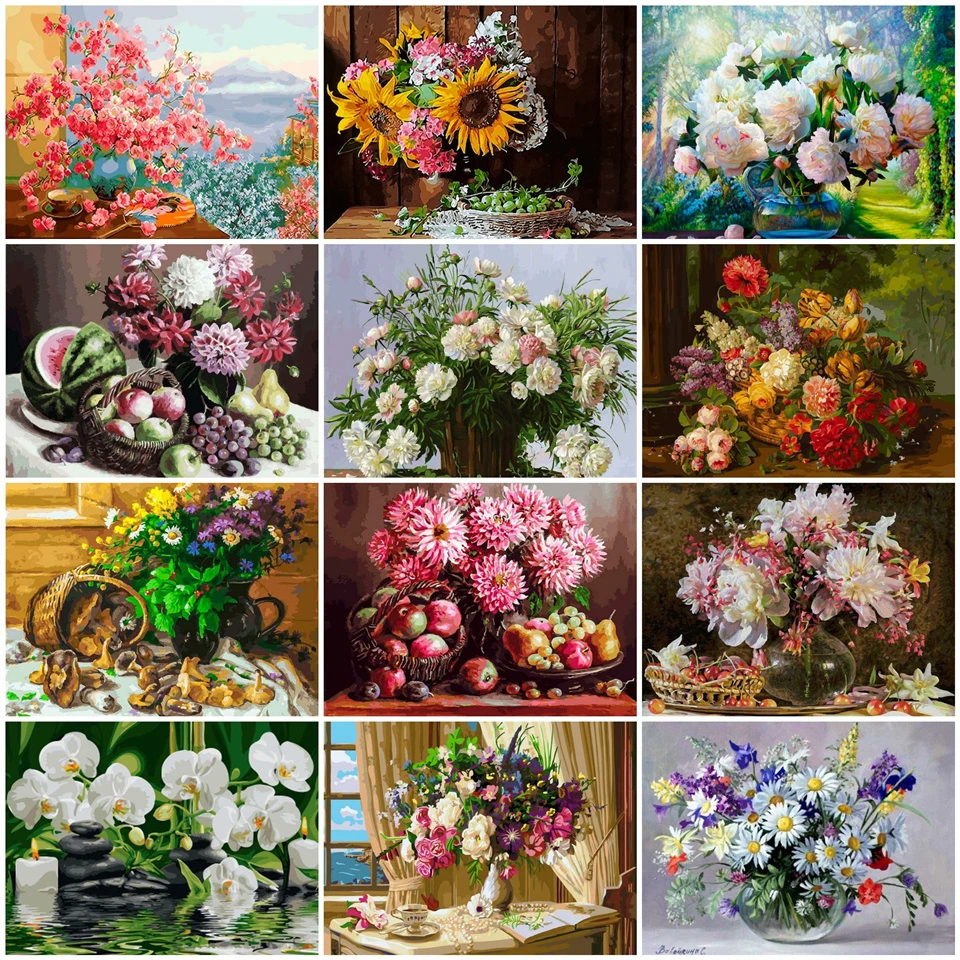 AZQSD DIY без рамки картина маслом по номерам цветы картины холст Европейский Стиль Живопись для взрослых гостиная домашний декор