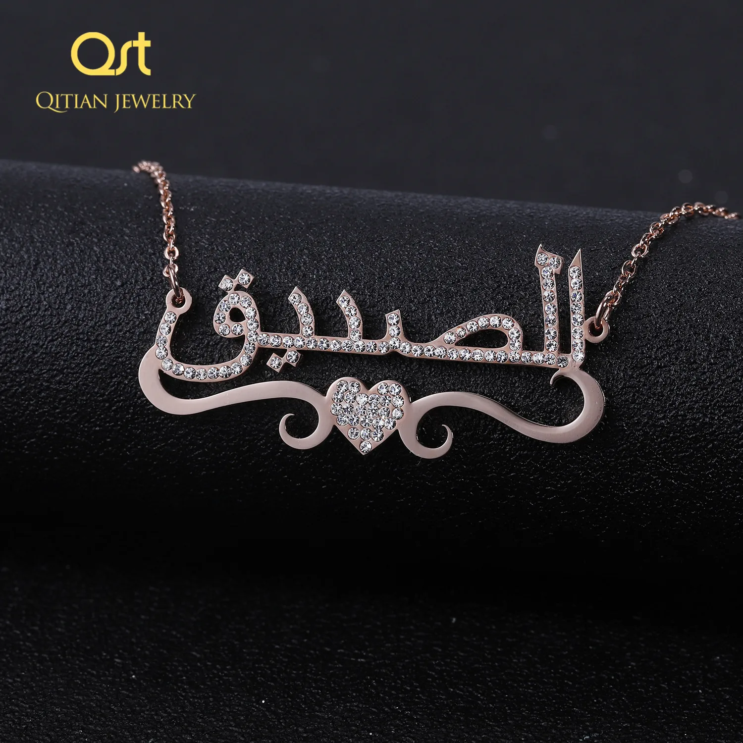 Индивидуальное ожерелье с арабским именем со сверкающим кристаллом,...