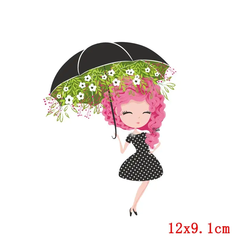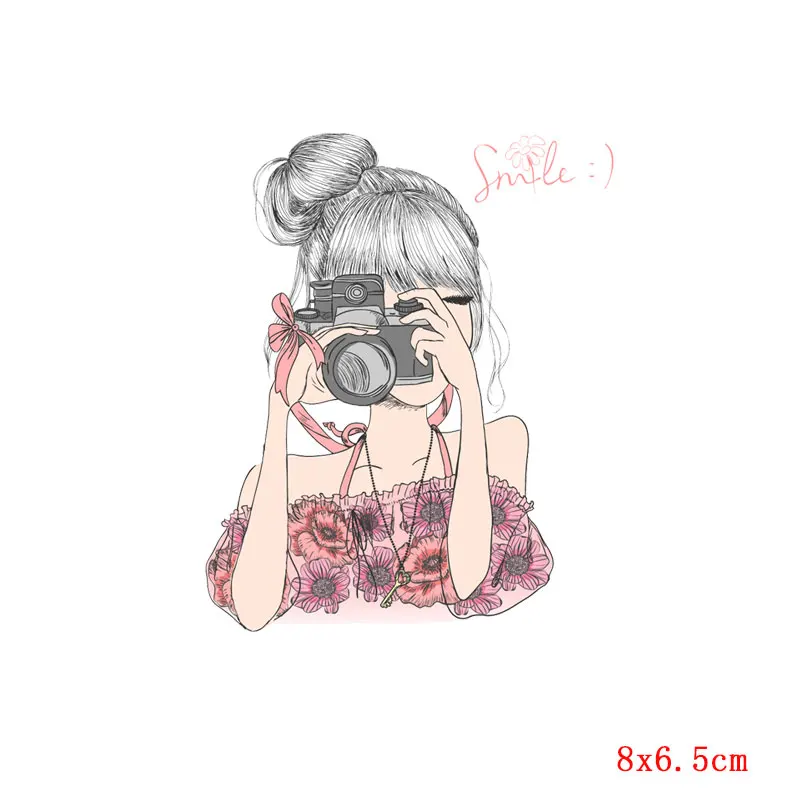 Термо-Стикеры для одежды симпатичная маленькая девочка, термонаклейки для одежды, футболки, полоски, женские топы, Аппликации, Цветочные наклейки